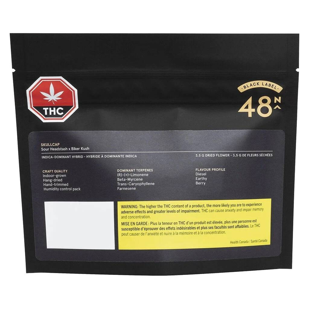 This resinous beauty will have you salivating before the bag is opened. With over 4% terpenes, our small-batch Black Label Skullcap is an indica hybrid that delivers an alluring gassy diesel aroma with fruity berry undertones. A cross between Sour Headstash and Biker Kush from legendary Karma Genetics, this indoor-grown flower is carefully hang-dried, hand-trimmed and hand-packed with a Boveda pack for a clean, fresh smoke.