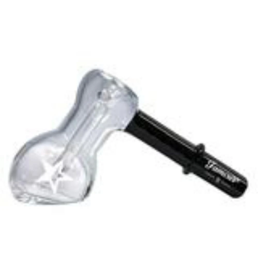 Designed for simplicity, our herb bubbler pipes feature modern design, bold colors, and smooth function. These beautiful bubblers are hand-blown, made with the highest quality borosilicate glass, and are ergonomically designed for your smoking pleasure. This hammer bubbler pipe uses water to smooth, cool down and filters out of your smoke like a bong, but at 6 inches in length it travels a lot easier than a bong. More than that, it looks awesome with hammer bubbler front and black, teal or milky colored downstem. Chunky and solid, this pipe will offer you years of smoking fun!