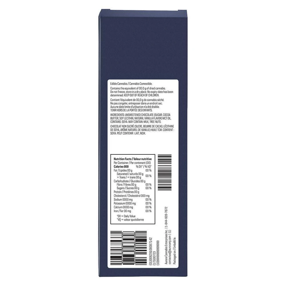 Aurora Driftβs 64% Dark Chocolate squares are made from premium and ethically-sourced ingredients, delivering a strong toasted cocoa flavour with a hint of coffee and chestnut. Every square is evenly-dosed with 2 mg of THC, extracted from Auroraβs best-selling strains using state-of-the-art CO2 extraction. The THC is then evenly distributed throughout (not injected) providing consistency in every bite. Effects take longer than dried flower to kick in but are longer-lasting. Remember to start slowly with a low dose. A simple and discreet method of consumption, each five-pack contains 10 mg of THC with 2 mg THC per square.
