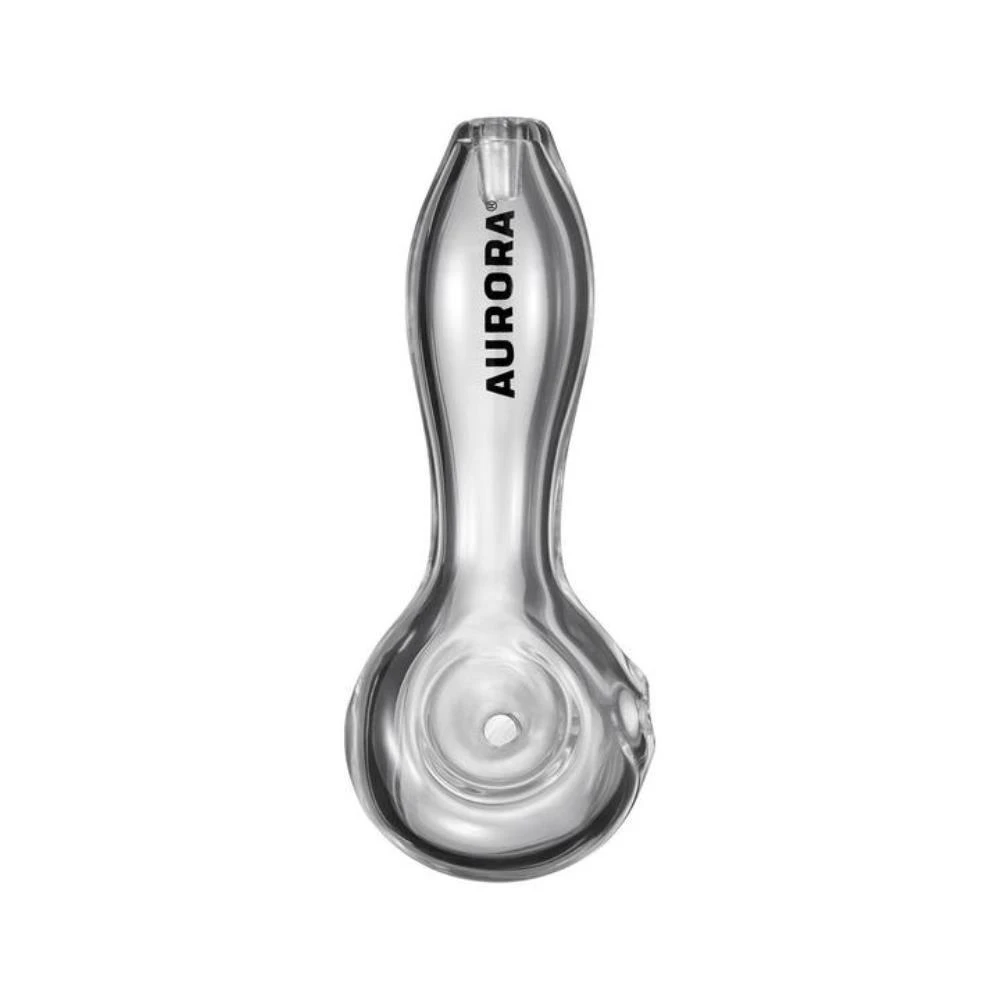 Made from thick, borosilicate glass this Classic Hand Pipe is 4” in length. It features a deep bowl for packing large amounts, and a left side choke to help regulate air flow. Available in Clear, Black and Blue and adorned with an Aurora decal by the mouthpiece.