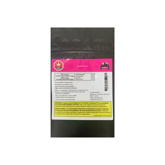 Hailing from one of the cannabis capitals of North America, Humboldt is a sativa-dominant hybrid that is believed to have a rich lineage. Afghani strains crossed with a California OG Kush provide sweet, fruity aromas. It has a terpene profile of beta-pinene, carene, and terpinolene.