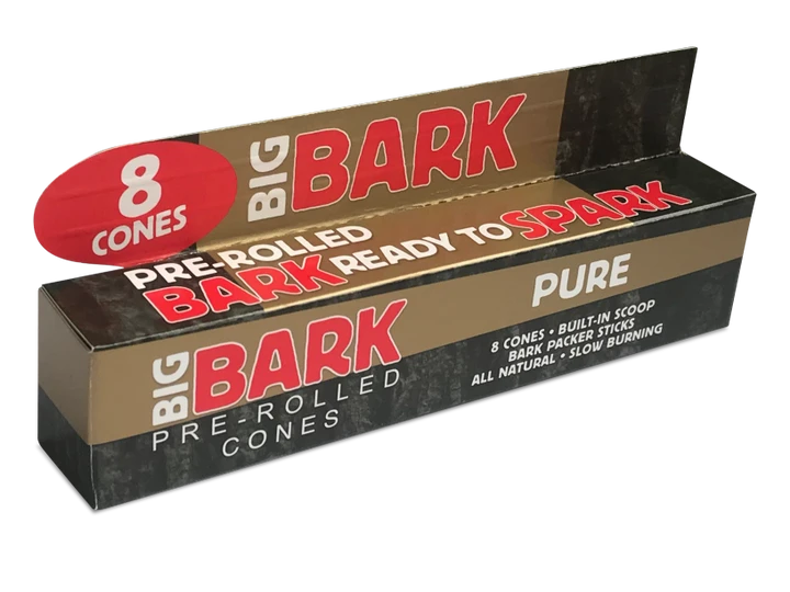 Pre-Rolled Bark, Ready to Spark. BigBark Pre-Rolled Cones feature added value with 8 Cones, 4 Packer Sticks and a tear-away scoop built right in to the packaging to help elevate your rolling experience. Never let a single tiny bit of herb go to waste.