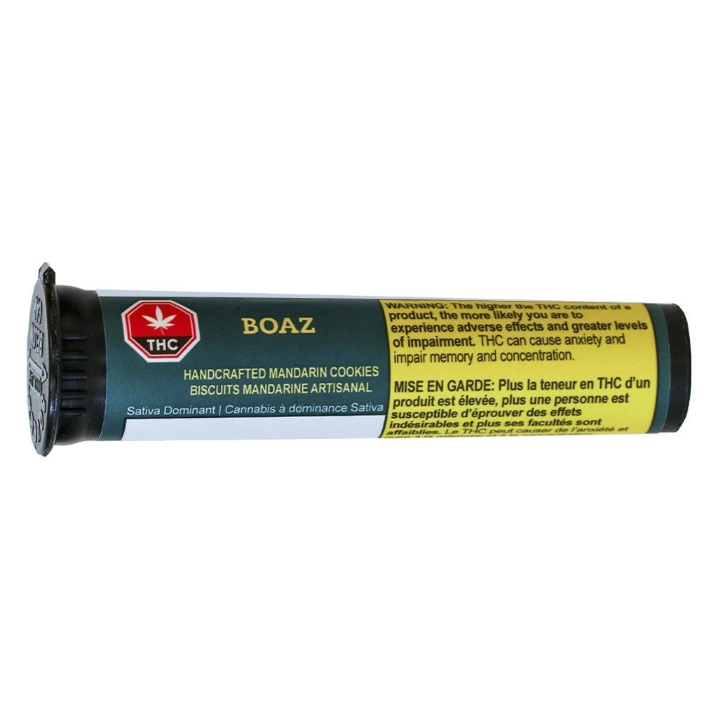 BOAZ Craft Cannabis premium flower pre rolls are always made with full buds. Each pre roll is then crafted by hand from being filled, rolled and packaged. Craft Mandarin Cookies is a high-THC potency sativa-dominant hybrid of Forum Cut Cookies and Mandarin Sunset. The flowers have dark green and purple accents scattered throughout sticky trichomes. Mandarin Cookies showcases the sweet aromas of pine (beta-pinene), floral and fruity (nerolidol) with peppery undertones (beta-caryophyllene). This product was grown as a small batch in a high-tech indoor facility in central Alberta. Every bud is carefully hung dried, hand trimmed and cold cured to exact standards.