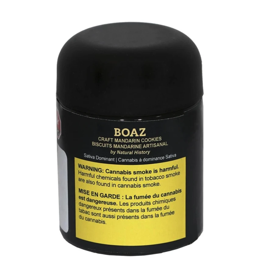 BOAZ Craft Cannabis Mandarin Cookies is a potent sativa-dominant hybrid of Forum Cut Cookies and Mandarin Sunset. The flowers have dark green and purple accents scattered throughout sticky trichomes. Mandarin Cookies showcases the sweet aromas of pine (beta-pinene), floral and fruity (nerolidol) with peppery undertones (beta-caryophyllene). This product was grown as a small batch in a high-tech indoor facility in central Alberta. Every bud is carefully hung dried, hand trimmed and cold cured to exact standards.