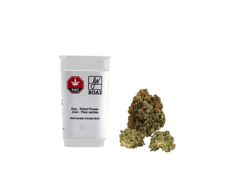 JW and Boaz Craft Cannabis have teamed up to bring Daytime Flower. We only use full-flower, sativa-dominant Quad Buds with no keif removed, producing premium hand-trimmed, cold-cured, hand-packaged flower. The aroma is earthy, gassy with a sour citrus overtone that’s accented by sweet berries and heavy diesel. The terpene profile is dominated by myrcene followed by limonene and cederene.