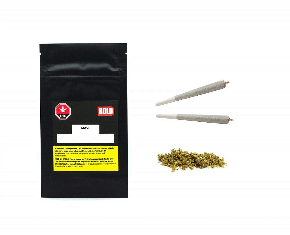 MAC1 is a powerful yet balanced hybrid, which crosses Alien Cookies with Columbian Gold and Starfighter for a super smooth experience. As with all BOLD strains, MAC1 is hang dried, slow cured and dry trimmed by hand to enhance its dense trichome-coated buds and amber and indigo tones. We only use whole flower in our pre-rolls because that’s the way it should be.