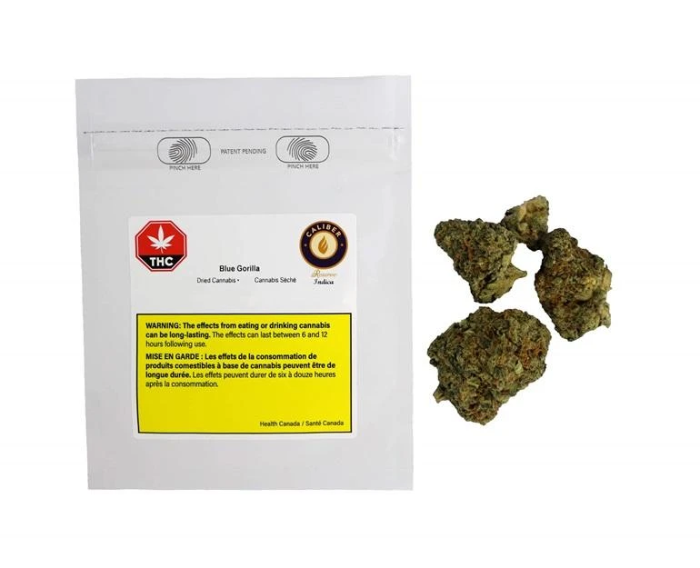 Blue Gorilla is a high-THC strain, grown under high-quality conditions. Its parent strains are Gorilla Glue and Blueberry. It’s a premium offering of cannabis that produces a strong flavour and aroma.
