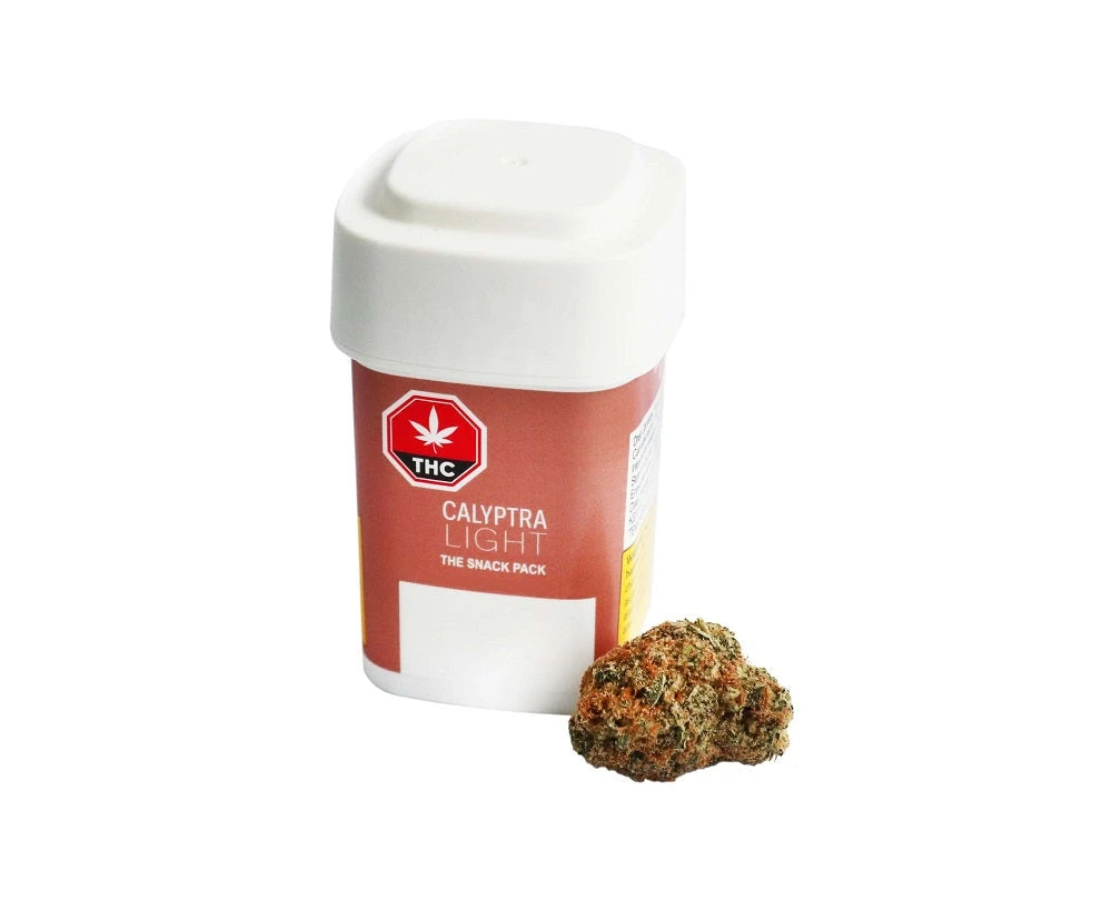 The Snack Pack dried flower is craft-quality bud in a compact container. Break off a bite or pop the whole thing in your pipe. Any Time is Snack Time!
