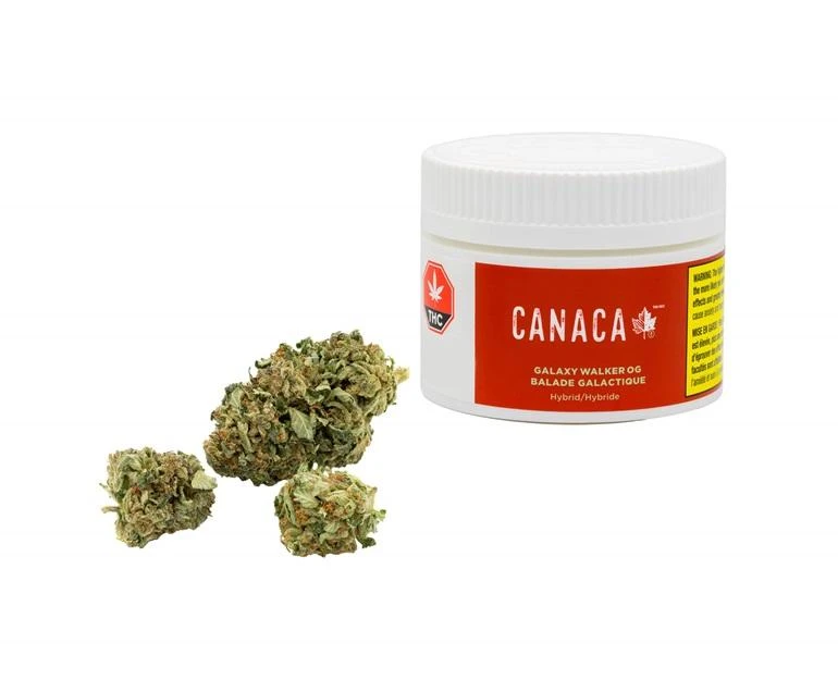 Canaca Galaxy Walker is a hybrid strain with a strong Citrus and earthy aroma with hints of diesel. Originating from a cross of skywalker and OG kush, these frosted green buds are loaded with ample trichome coverage.