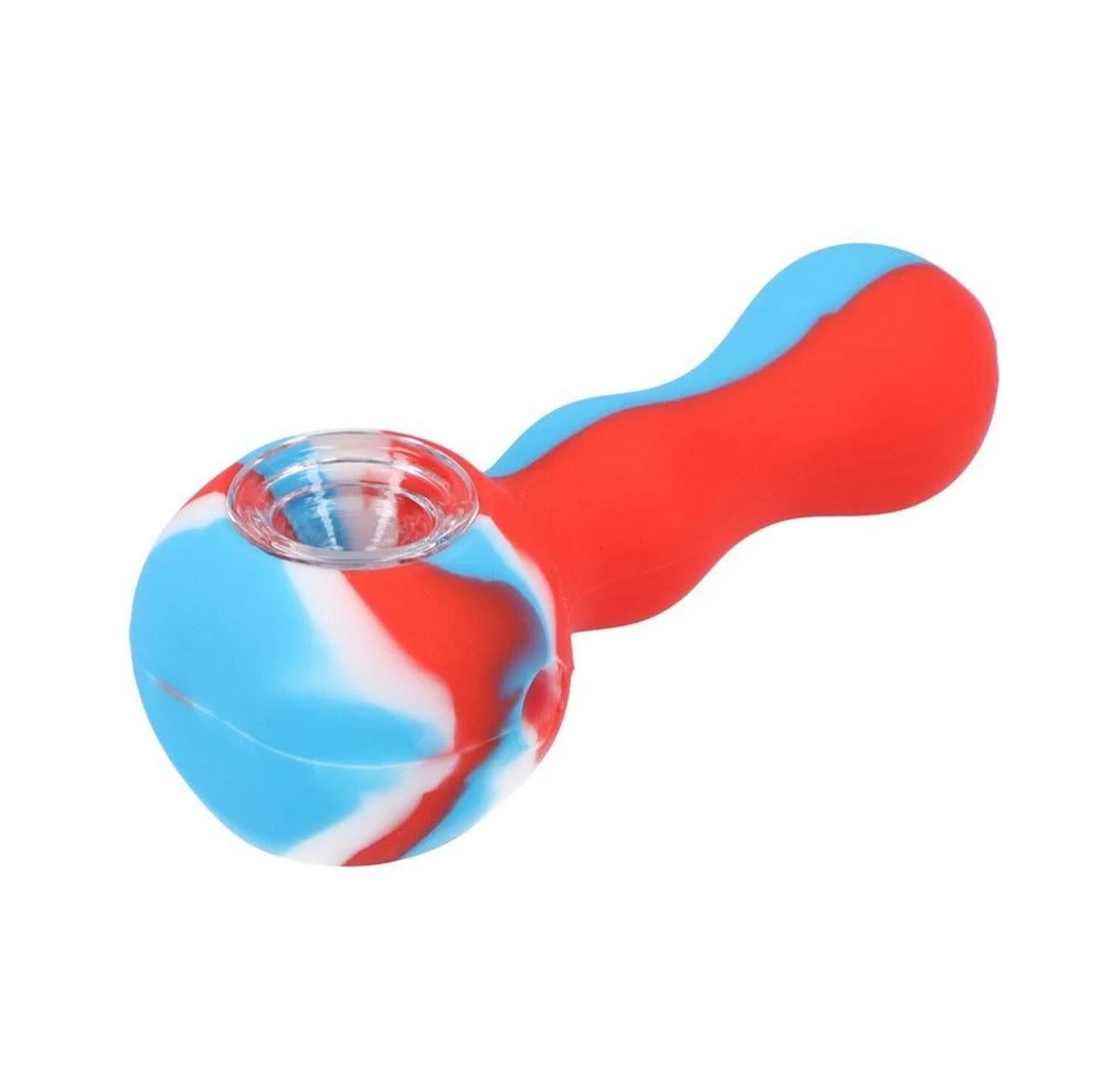 Canna Cabana 4″ Silicone Pipe W/ Glass Bowl & Secret Storage – Blue/Red Bubbler