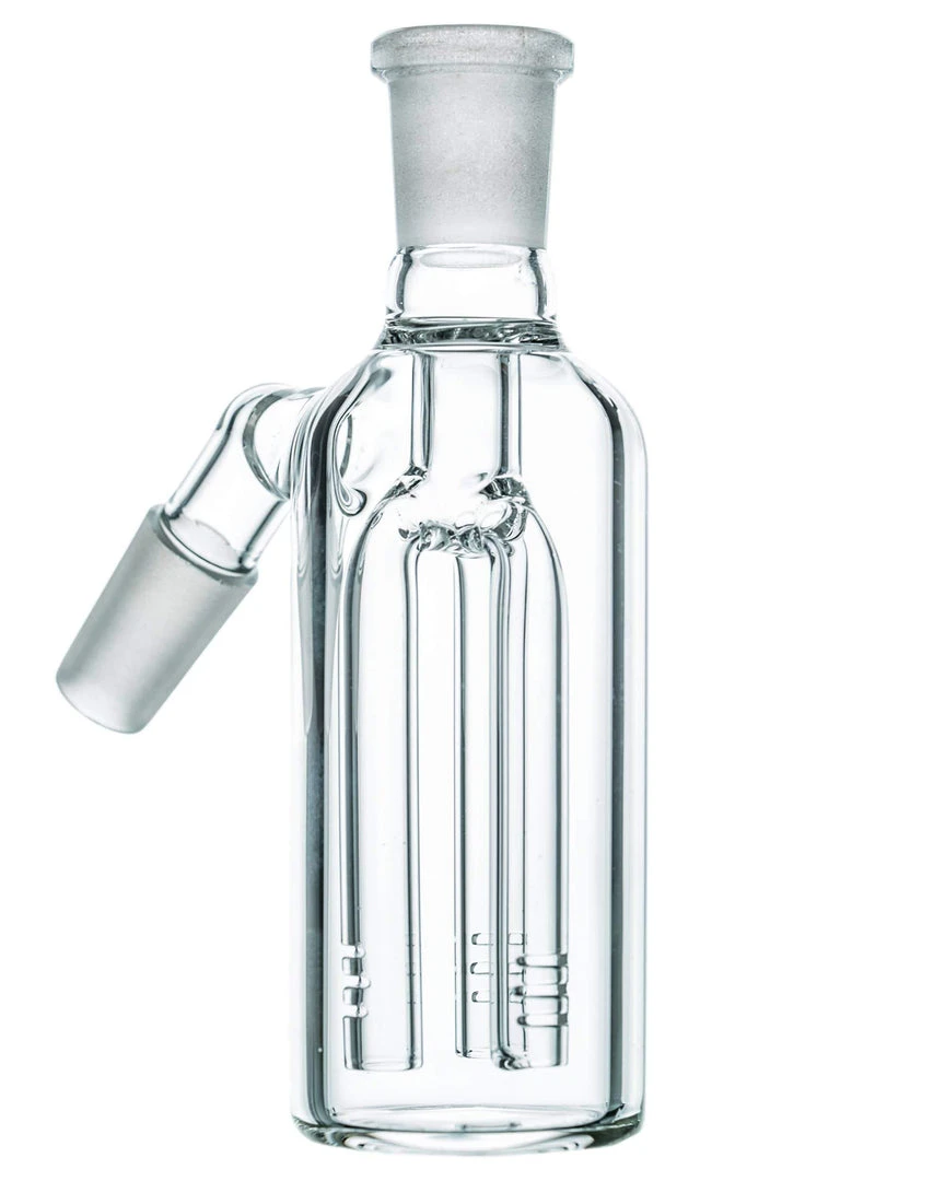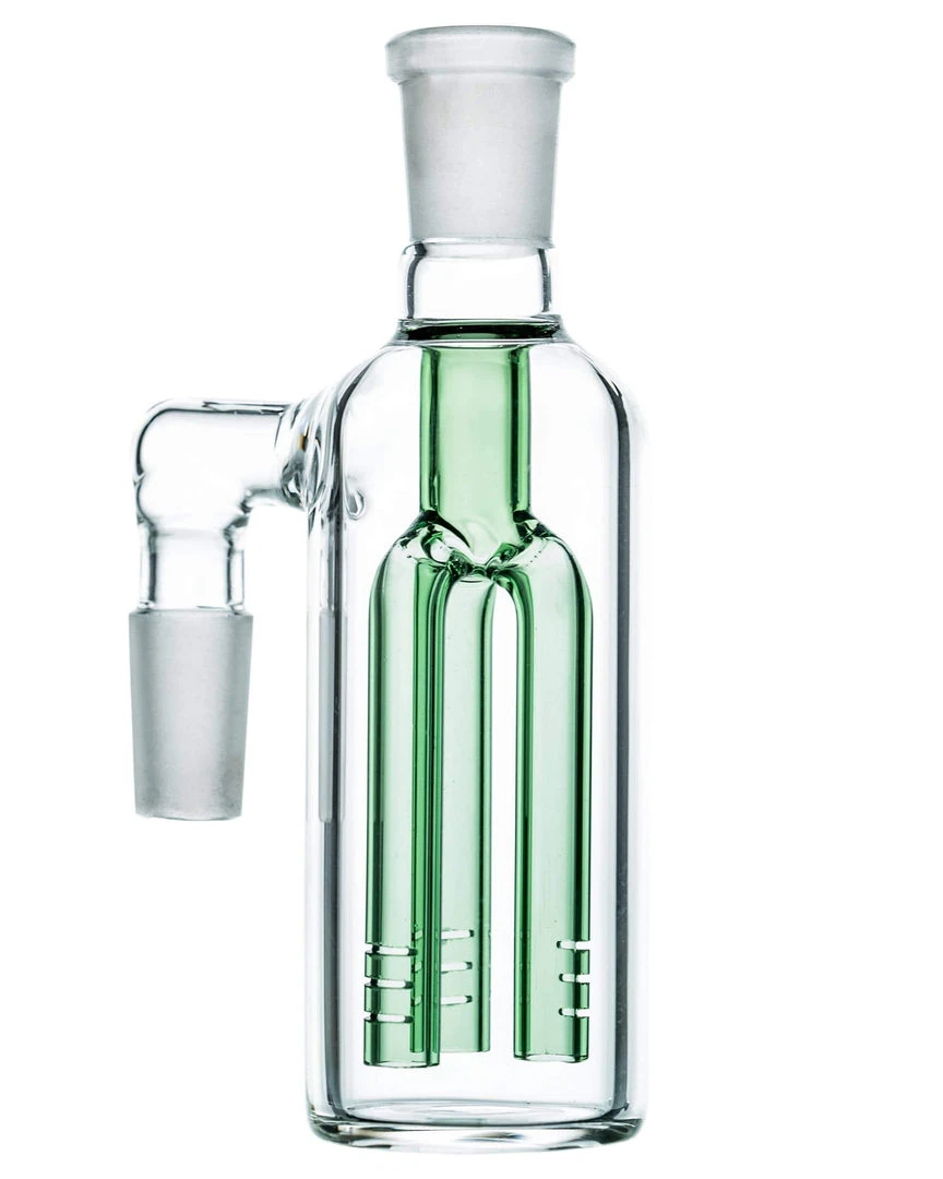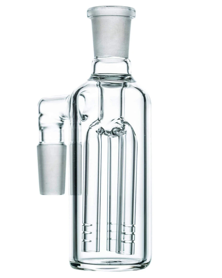 This ashcatcher comes in almost every style you need to fit your bong. Choose between joint size, angle and even color. Every variation comes with a three arm tree perc and is made with thick, scientific glass. Use this ashcatcher to keep your bong and smoke clean.