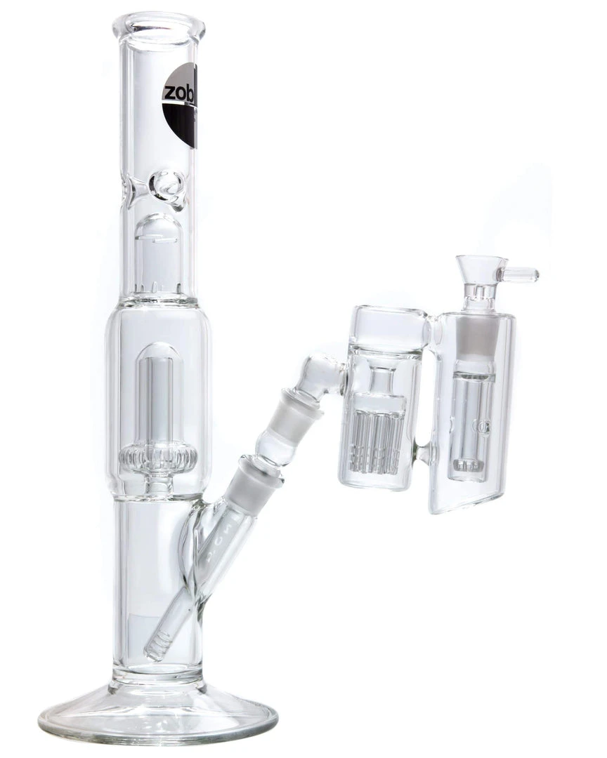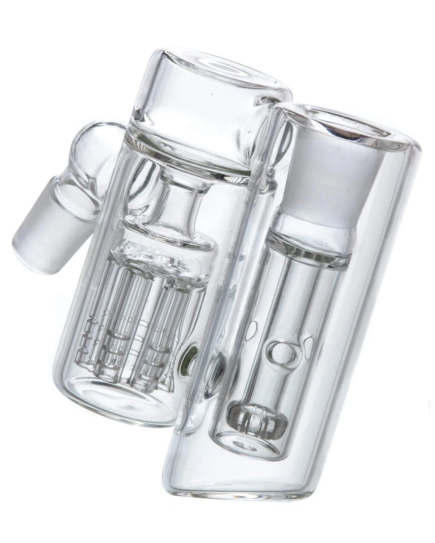 This scientific glass ashcatcher is a simple accessory that can reap noticeable benefits to the smoker. As its name suggests, the primary role of this smoking accessory is to prevent ash from entering your water pipe. The second is to begin the distilling process early, by filtering your smoke through both chambers before it even enters the glass pipe. Each chamber has a unique percolator, the first has a slitted showerhead perc and the second has a 7 arm tree perc with 3 slits on each arm for increased airflow. Both of these percs act as a means to cooling and filtering the smoke while the dual chamber design will catch any ash from your tobacco that passes through the bowl. This ashcatcher fits standard 18mm female joints and contains its own female joint for use with 18mm male bowls.