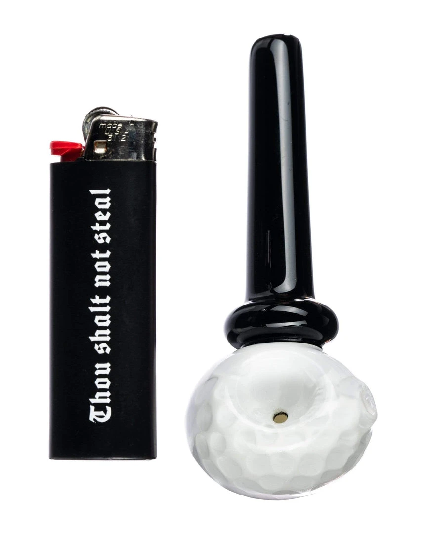 A perfect gift for the avid golfer/smoker, the Golf Tee Hand Pipe looks like the real thing. The bowl resembles an actual golf ball while the black body looks like a tee. There is a side carb hole and the head has grooves that look like the ones on the real thing. The themed glass spoon pipe is about 4.5″ long. You will always hit the green with the DankStop Golf Tee Hand Pipe.