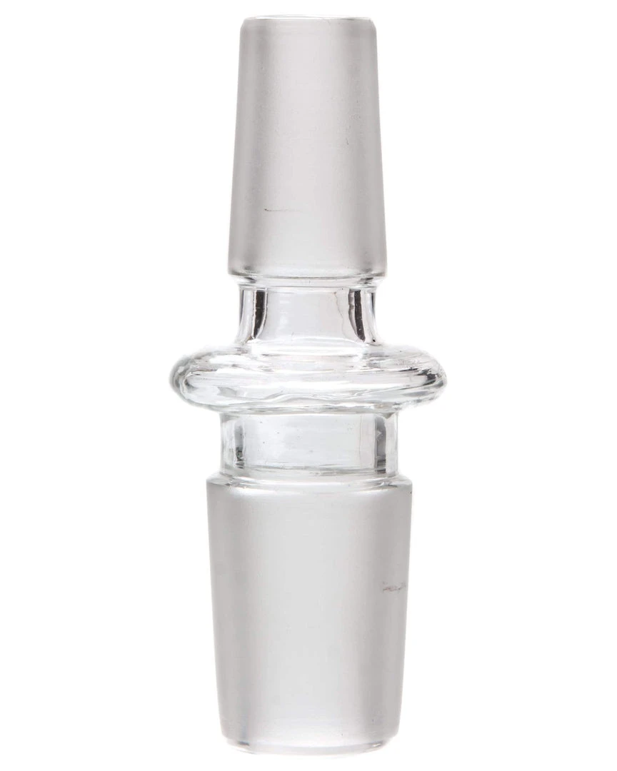 This adapter turns your 14mm female joint into an 18mm male joint. This glass adapter allows you to use your female jointed water pipe as a dab rig for essential oils and legal concentrates.
