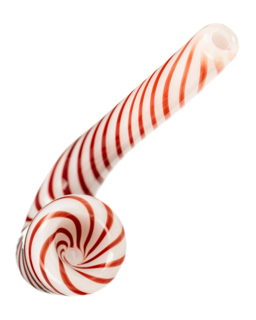 Everyone’s favorite Christmas candy can now give you joy in another awesome way! The Candy Cane Sherlock Pipe is shaped exactly like the tasty holiday treat. Its curved neck, located right under the bowl, allows for more room for your smoke. The curvature also allows you to stand the sherlock pipe upright. A side carb hole can be found on the side of the bowl and lets you control the airflow while inhaling. With this side carb hole, you can regulate how much dry herbs you are lighting and make sure you are not burning it all. The themed glass pipe’s design is very easy to hold because of its shape. Red and white striping can be found encompassing the entire hand pipe. At the long end of the Candy Cane Sherlock Pipe is a mouthpiece for comfortable tokes. This holiday-themed pipe is a perfect Christmas gift for that festive smoker you know or the one you got in a secret Santa. You will be reminded of the great taste of the actual candy treat when you are toking on the Candy Cane Sherlock Pipe.