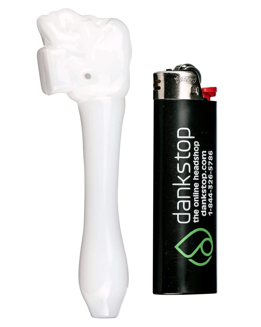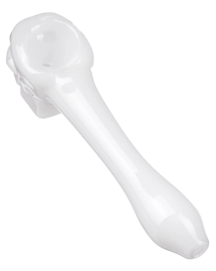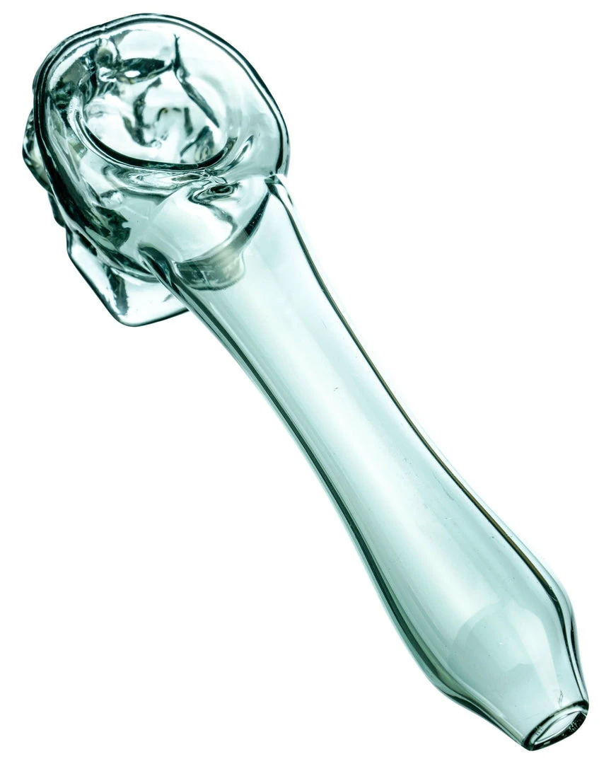 Whether anatomy or the more macabre and macob are your thing, DankStops Skull Mini Spoon Pipe should be right up your alley! Each pipe is mold pressed and features a left side carb to control airflow as your hitting your dry herbs. Pack some dry herb brainage into the top of the skull spoon face and watch as smoke fills the clear glass frame of the entire hand pipe. The Skull Mini Spoon Pipe is a great travel option for stoners on the go, easily fitting in your pocket or any small travel case of your choice. This little glass bone daddy won’t be decaying into dust any time soon, so add this affordable spooky spoon to your collection today!