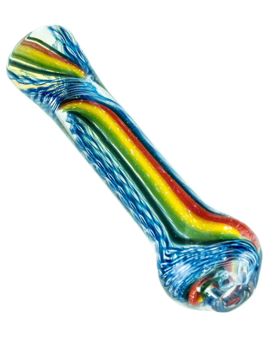 Chillums don’t have to be boring or simple looking. The Rasta Stripe Chillum has an entrancing blue and white braid style body. The colored braids run from the tip of the flat mouthpiece twist at the bottom of the bowl and extend back out towards the opening. Running the same length and style as the blue and white braids is a Rasta stripe, giving the chillum its name. The lovely stripes of green, yellow, red, and black have interesting little specks scattered throughout. These specks give the Rasta stripe a dichroic glass sparkle that garners much needed attention. Although the Rasta Stripe Chillum is only 3.5″ long, it is made with thick glass. Chillums are usually handed haphazardly and thrown in drawers or pockets. Just because your hand pipe has a chillum design does not mean it has to be fragile or dainty. Now you don’t have to worry about chipping your chillum every time you are passing it around with your group of friends. It is not too thick where it will not easily fit into your pocket however, giving you the freedom that chillums allow. The mouthpiece is flat so the Rasta Stripe Chillum will not roll off your table. Rasta colored glass is very popular in the smoking community. It is featured prominently on the Rasta Stripe Chillum. The thick glass composition and unique background coloring is a pleasant bonus. This is the kind of chillum that could change the views of people who are not usually fans or users of chillums.
