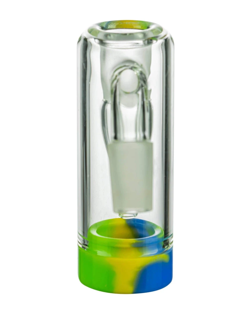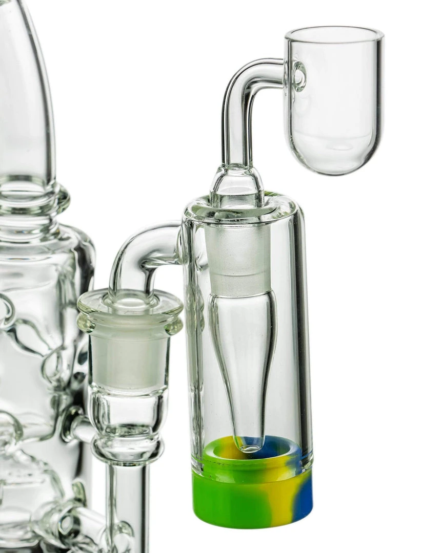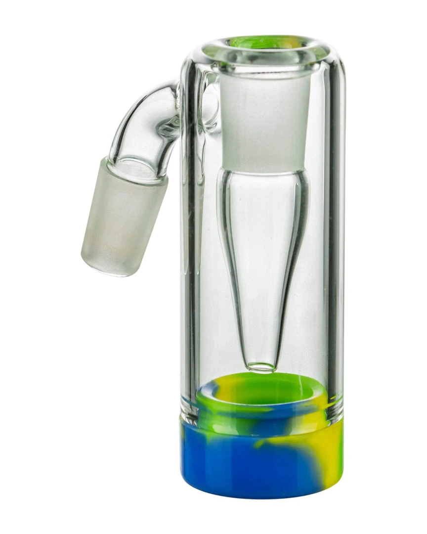 This Reclaim catcher’s base is fitted to hold a silicone jar in place, making it supremely easy to harvest remaining oils from your favorite dab rigs, and its placement outside the piece itself means it will also keep them cleaner too!Β