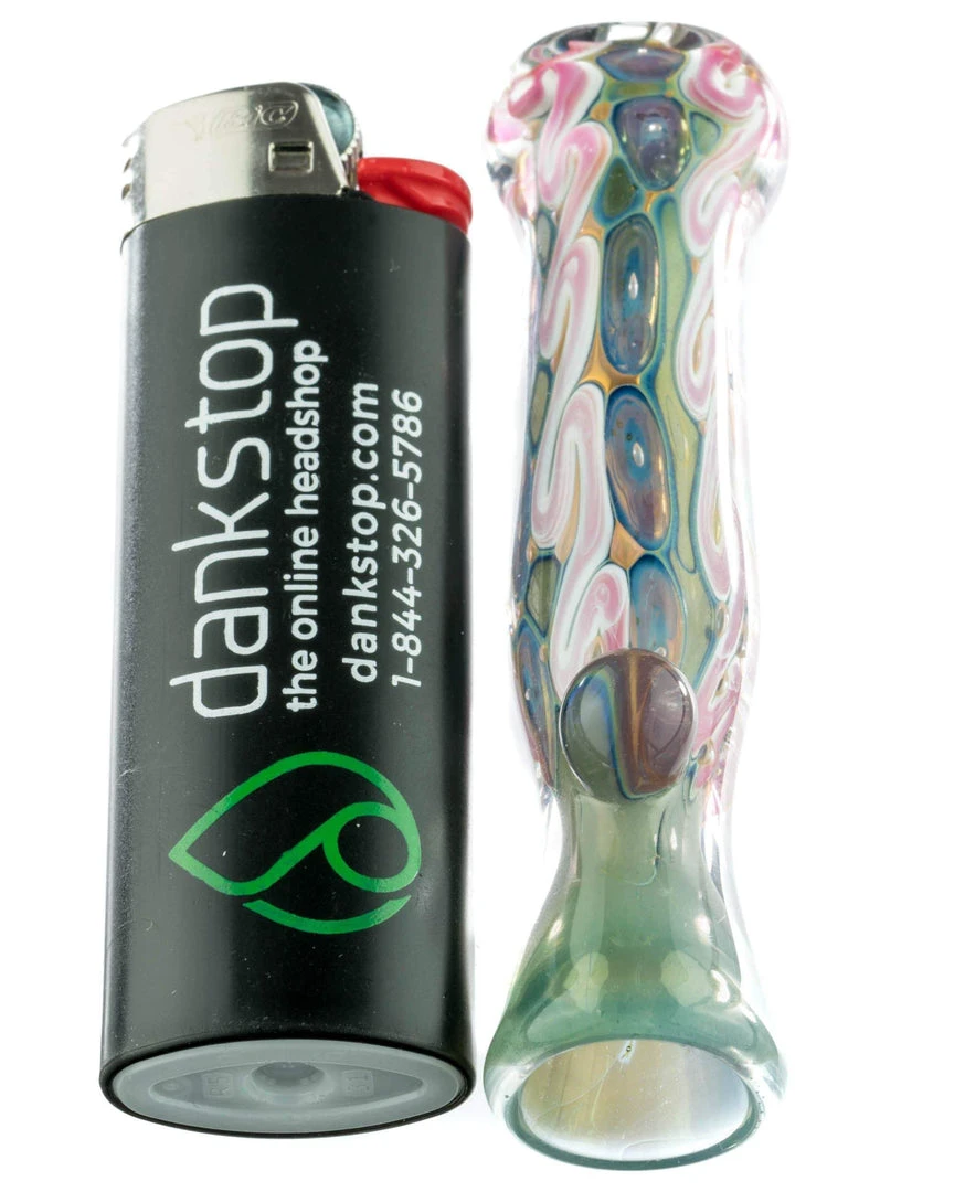 With a color scheme like this, you will want to take this hand pipe to the beach for a long, relaxing smoke sesh. The Sea Foam Dream Chillum is made for smoking your favorite dry herbs or tobacco while the waves crash at your feet. With its teal tubing under swirls of pink and blue, the chillum captures this ocean feel perfectly. Washing ashore at a convenient 3.5 inches long, the Sea Foam Dream Chillum is as small as most sea shells, making it very easy to carry with you while you take those long walks on the beach. Between the flat mouthpiece and glass marble on top, this chillum won’t roll back into the sea anytime soon.