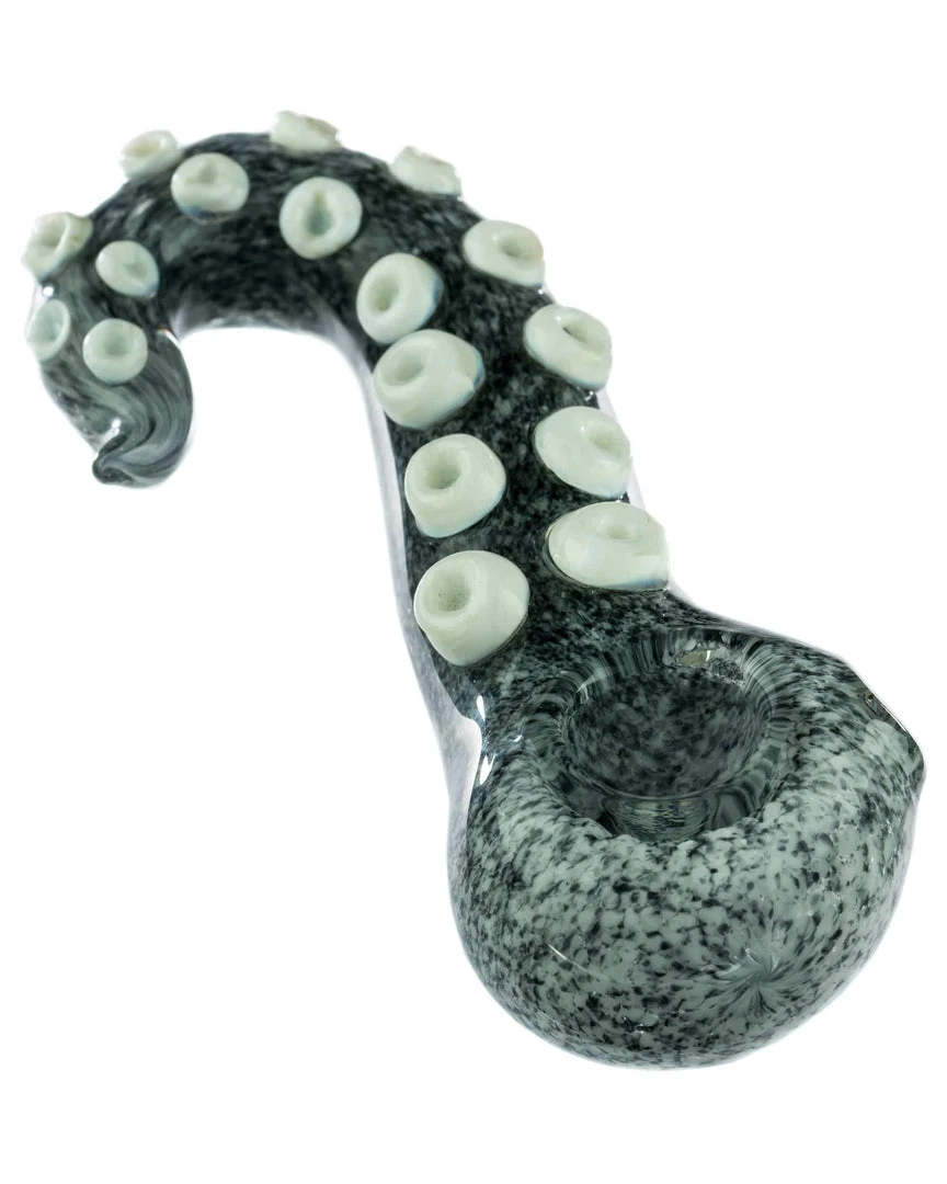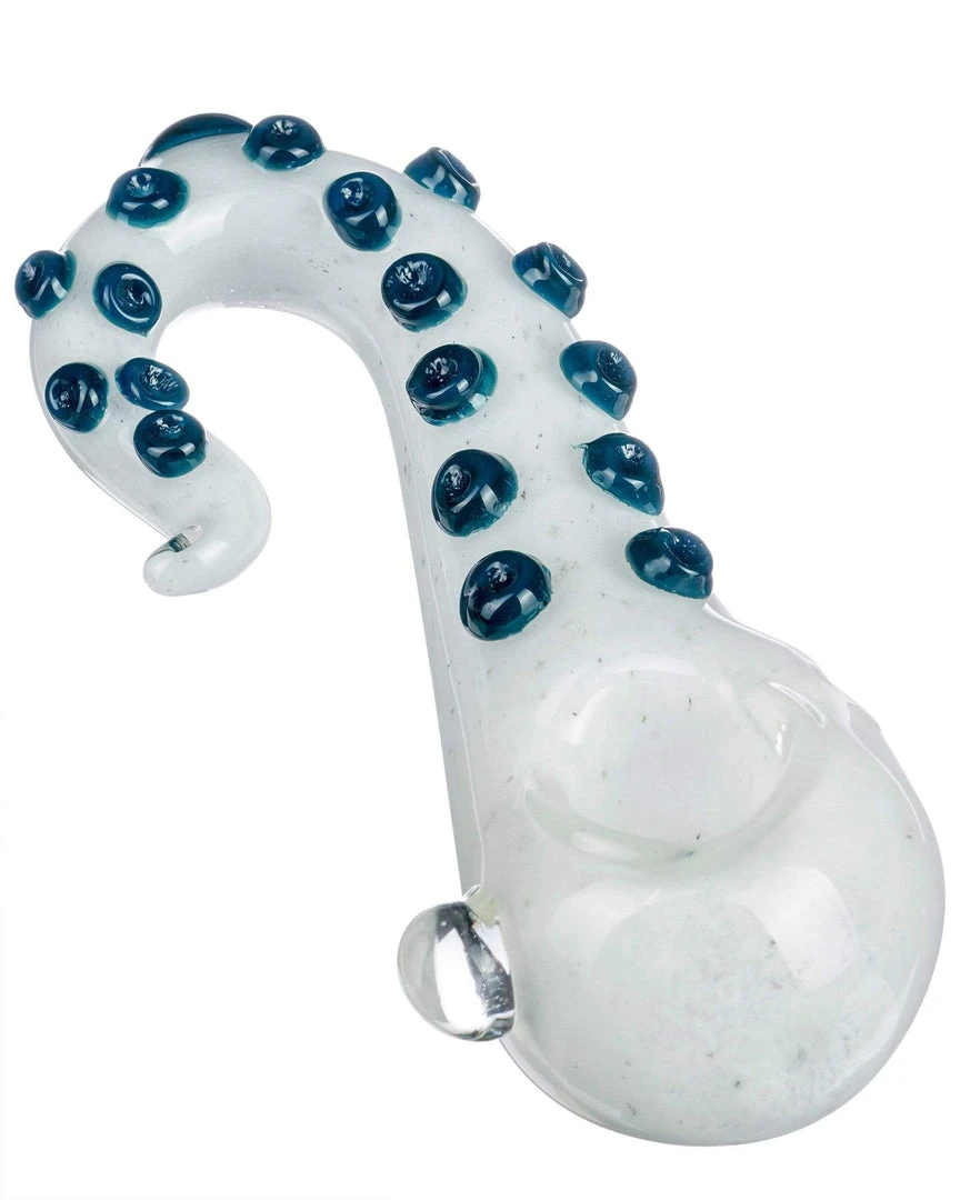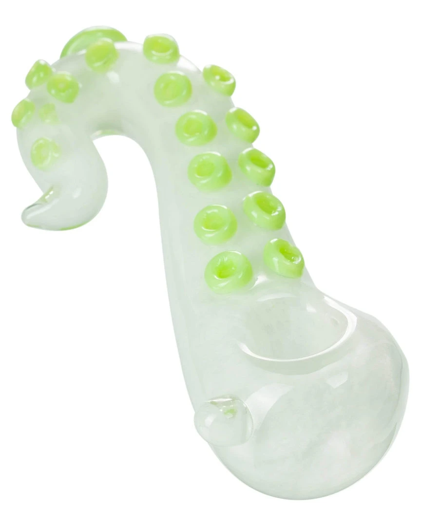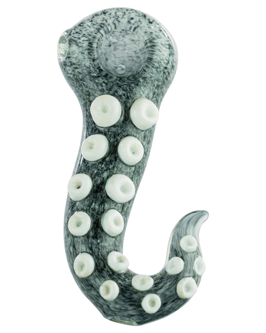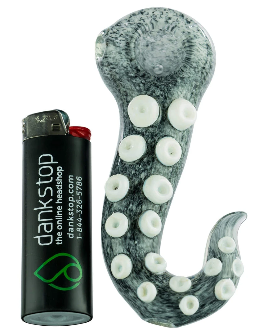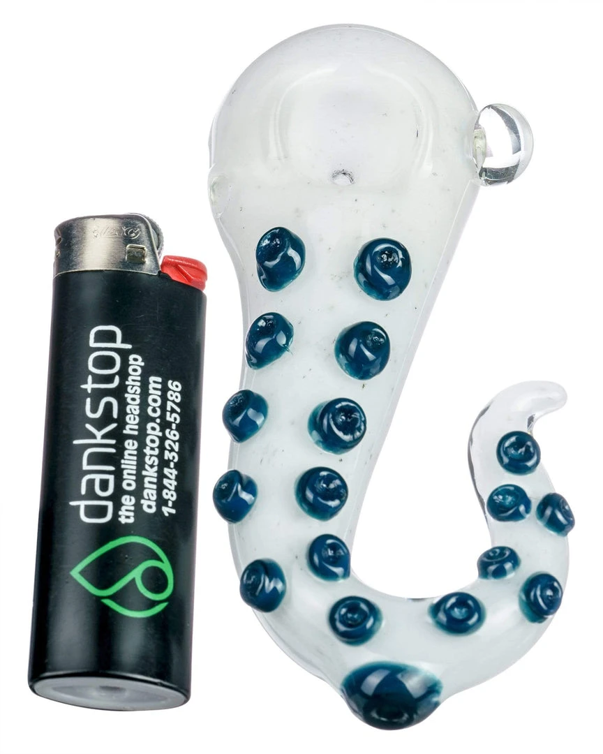 A beast from the deep abyss offered DankStop it’s mighty tentacle. So of course, they made a hand pipe out of it! This glass pipe features an intriguing design with aΒ colored glass body covered by raisedΒ suction cups. The tentacle’s hook shape allows it to hold on to your hand as well as an actual octopus, in addition to providing a solid grip while smoking. Along with a deep bowl, this spoon pipe offers a fun and functional smoking experience.
