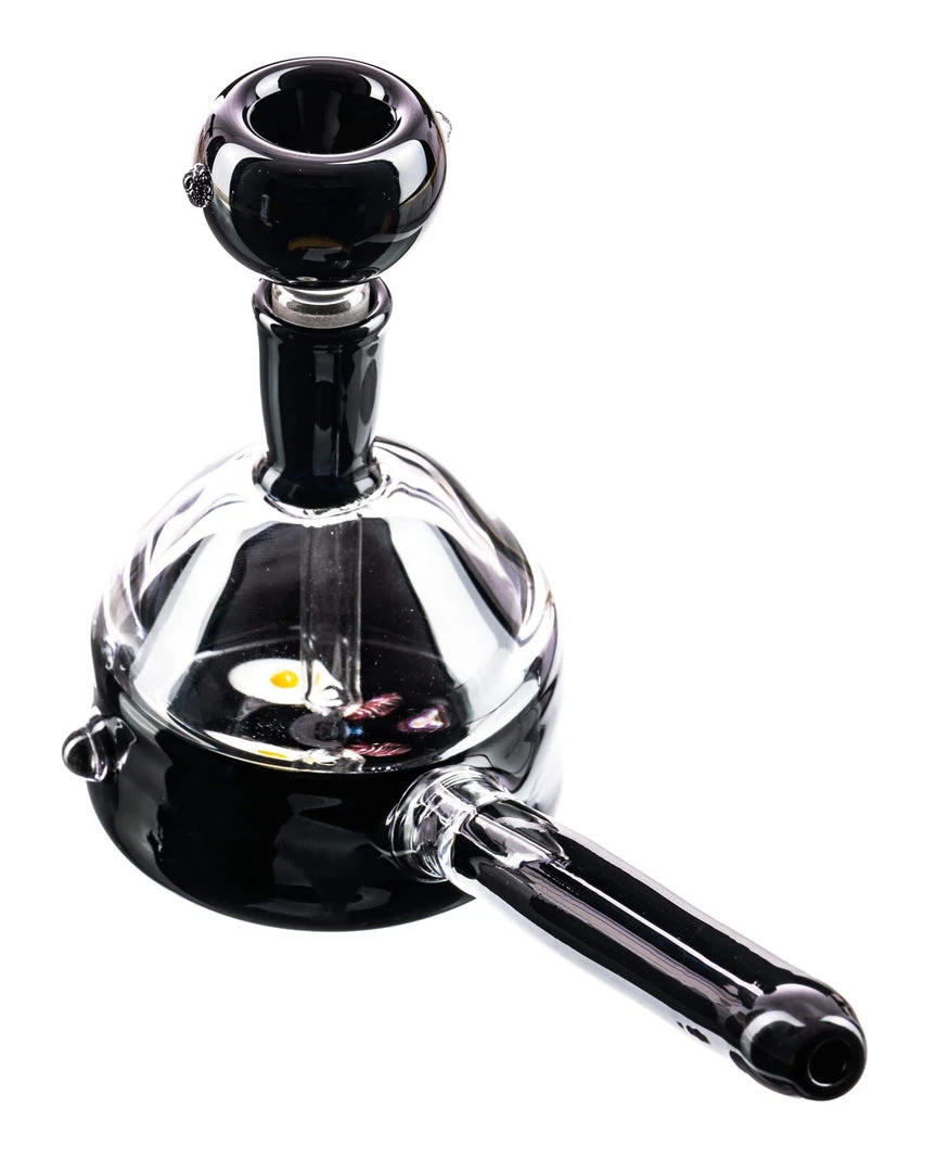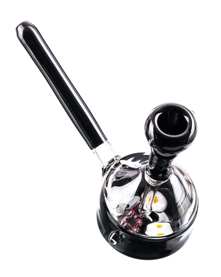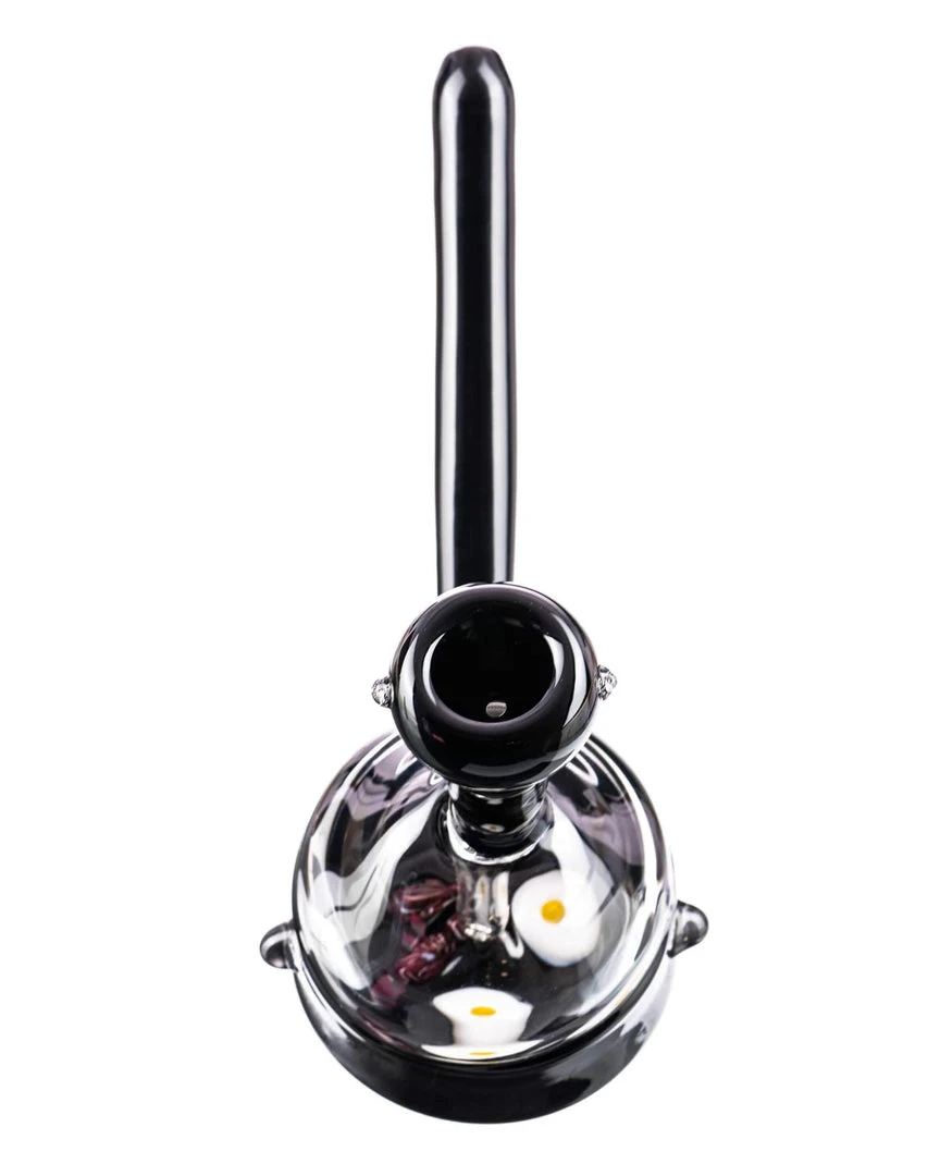 What’s better than the smell of eggs and bacon frying up in the morning? The smell of smoke coming from your “Wake n Bake” Breakfast Bong! Complete with glass breakfast foods inside its chamber, this mini bong has a fixed downstem to help smooth your smoke out. The diffused downstem is attached to the 14mm female joint. The included 14mm male bowl matches the black coloring of the 3.25″ wide base and bent neck. Serve up something really tasty with the “Wake n Bake” Breakfast Bong.