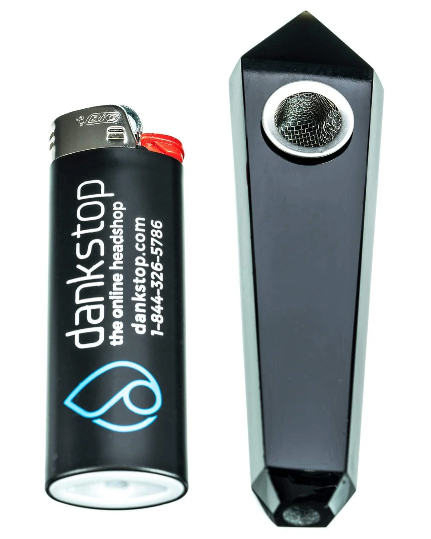 With the Quartz Crystal Stone Pipe, you get a black opaque, morion colored pipe. You will receive a durable hand pipe with precision cut features. The joint fits the included mesh screen bowl, which is easy to take out for cleaning or packing. The tubing and mouthpiece are also engraved into the spoon pipe itself. This black option is made from Obsidian.