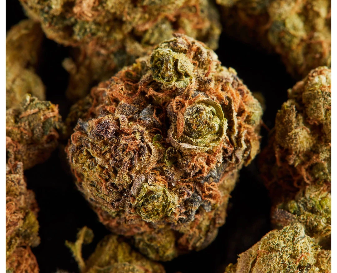 Headbanger bud is dark green with hues of purple and orange pistils. Numerous trichomes throughout the medium sized and dense buds offer a sweet aroma.