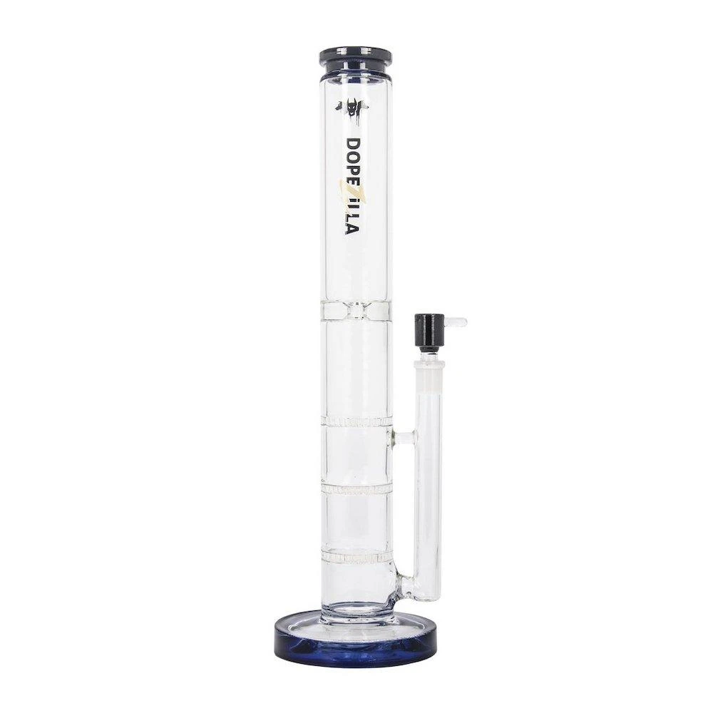 Part of this fun collection is Cerberus, a clear straight tube ice bong with a coloured accent on the bowl, base, mouthpiece and custom monster logo is extremely easy to clean and maintain. The honeycomb percolators makes the hit incredibly smooth. It features a bullet hole ice notch, for optimal filtration with a frosty touch.