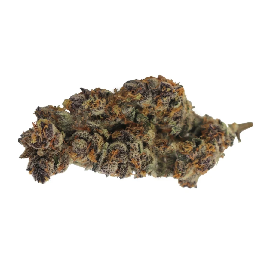 Purple Pug is an indica-dominant hybrid crossed from rare Pug’s Breath and Mendo Montage F3. Yellow in appearance, it is covered in a thick layer of matured amber trichomes. Its unique aroma is sharp, almost acrid, yet the full-bodied scents of vanilla and licorice, and earthy flavour are a nice contrast. Purple Pug is grown with organic practices in modern climate-controlled hybrid greenhouses, with the added benefit of sunlight, and dried and cured to perfection.