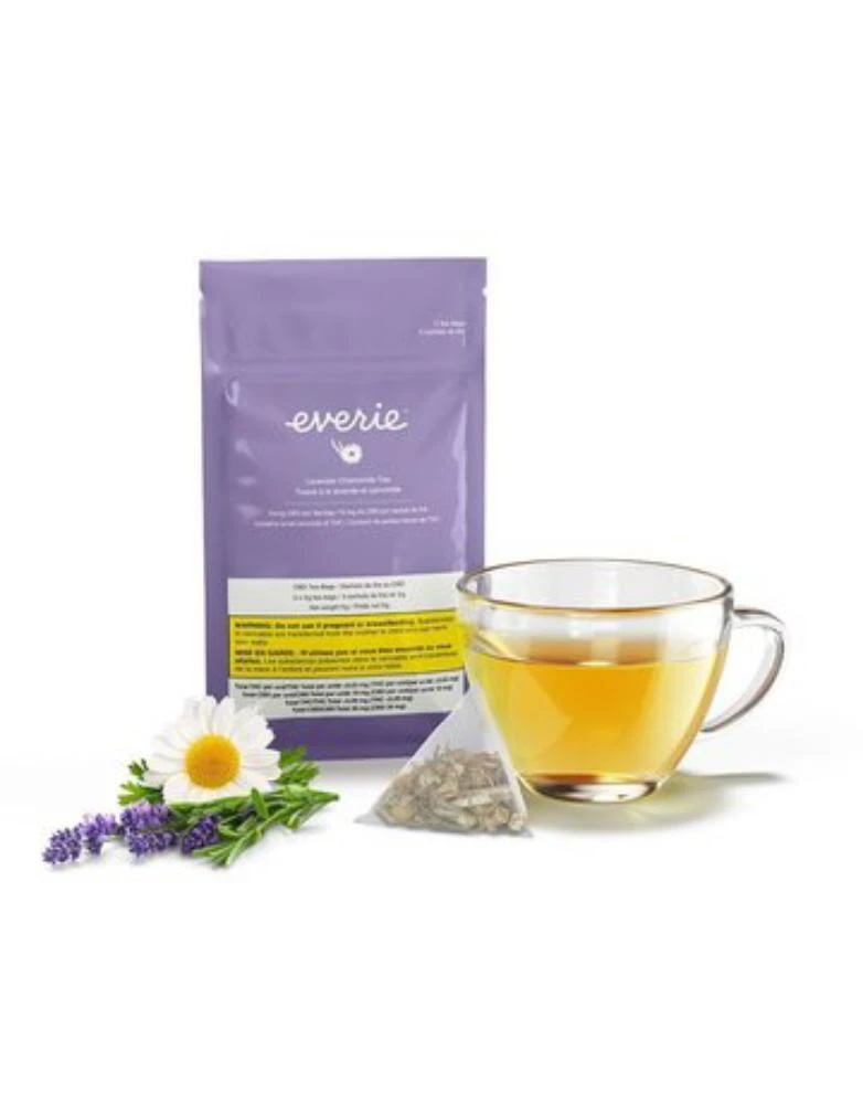 Everie’s Lavender Chamomile Tea is a naturally caffeine-free blend with a light yellow colour when brewed. Pack of 3 tea bags, each infused with 10 mg of CBD. Contains small amounts of THC. Brew 3-4 minutes and serve hot.