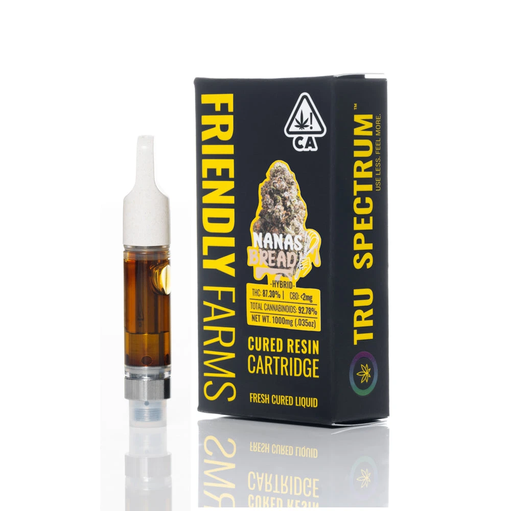 Friendly Farms cured resin cartridges are crafted from cured cannabis flower grown by industry leading cultivators from California. We NEVER filter or use additives in our oil because we believe in the most natural representation of each strainβs unique flavors and effects. Thatβs the Tru Spectrum difference.