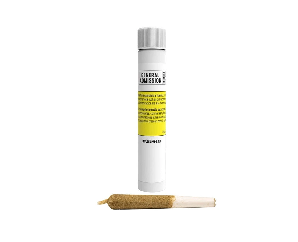 Sourced from quality whole-flower cultivars, infused with General Admission’s signature flavoured distillate and dusted with premium kief, this is not just any squish in a stick. Banana Kush Distillate Infused Pre-Rolls takes you on a tropical limbo along the dank, dusty trail of OG Kush mixed in with the sweet aroma of overly ripe banana trees lining this magical highway.