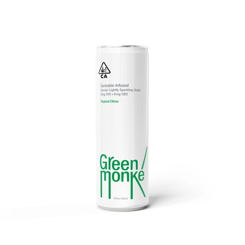 Green Monké is a lightly sparkling happy soda with a signature emerald color and infused with a social low-dose of 3mg THC and 6mg CBD. Easy-drinking and bursting with tropical citrus flavors that are best experienced when chilled or over ice.