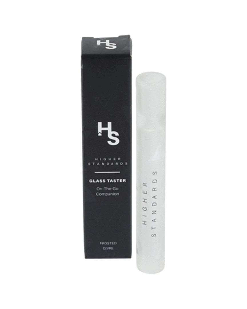 Glass Tasters from Higher Standards offer the same exceptional level of craftsmanship as their premium line of Dab Rigs, Torches, and other Cannabis accessories. These tasters feature at signature Higher Standards triangle pattern etched into the glass. Choose from either frosted on clear, OR clear on frosted.Β