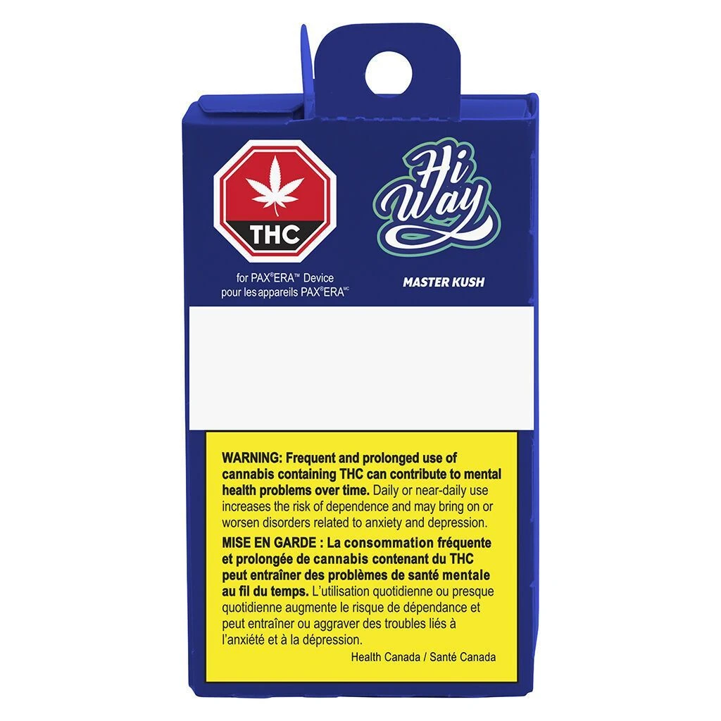 Hiway PAX pods combine a high-THC cannabis-derived distillate and a customized terpene blend that hits the nose. With myrcene as its dominant terpene, this Master Kush PAX pod is reminiscent of the classic OG you know. With hints of pine and earth, this one is for the Kush fans.