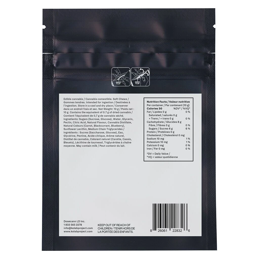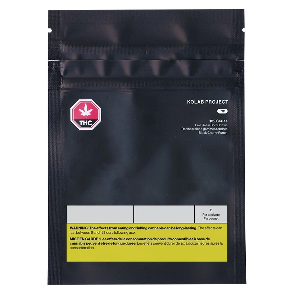 This first release in the 132 Series, the Live Resin Black Cherry Punch soft chew is a truly full spectrum experience. Combining sweet, sticky and aromatic Black Cherry Punch live resin with our premium, high quality distillate, the result is a rich berry and apple candy taste for a uniquely single strain flavour. Kolab Project is a platform dedicated to supporting and celebrating the connection between cannabis and culture. Our mission is to provide a carefully curated selection of exceptional cannabis, accessories and experiences to Canadian cannabis enthusiasts in collaboration with culturally relevant creators. Embrace the Unexpected.