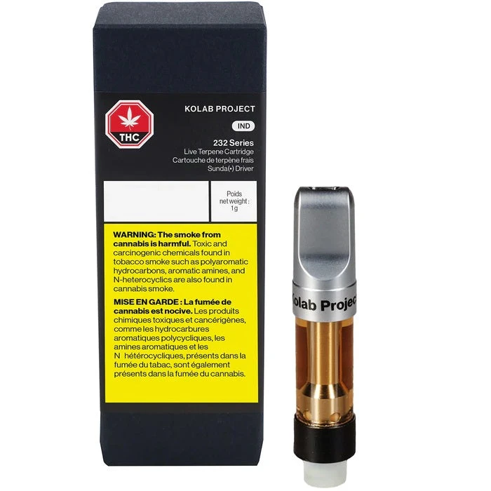 This 232 Series Live Terpene Cartridge by Kolab Project starts with fresh frozen Sundae Driver that’s been put through the hydrocarbon extraction process. The resulting terp sauce is blended with distillate for an aromatic live terpene cart that combines the sweetness of cookies with the fruitiness of cherry pie and a vanilla cake frosting aroma. Compatible with 510-thread batteries.