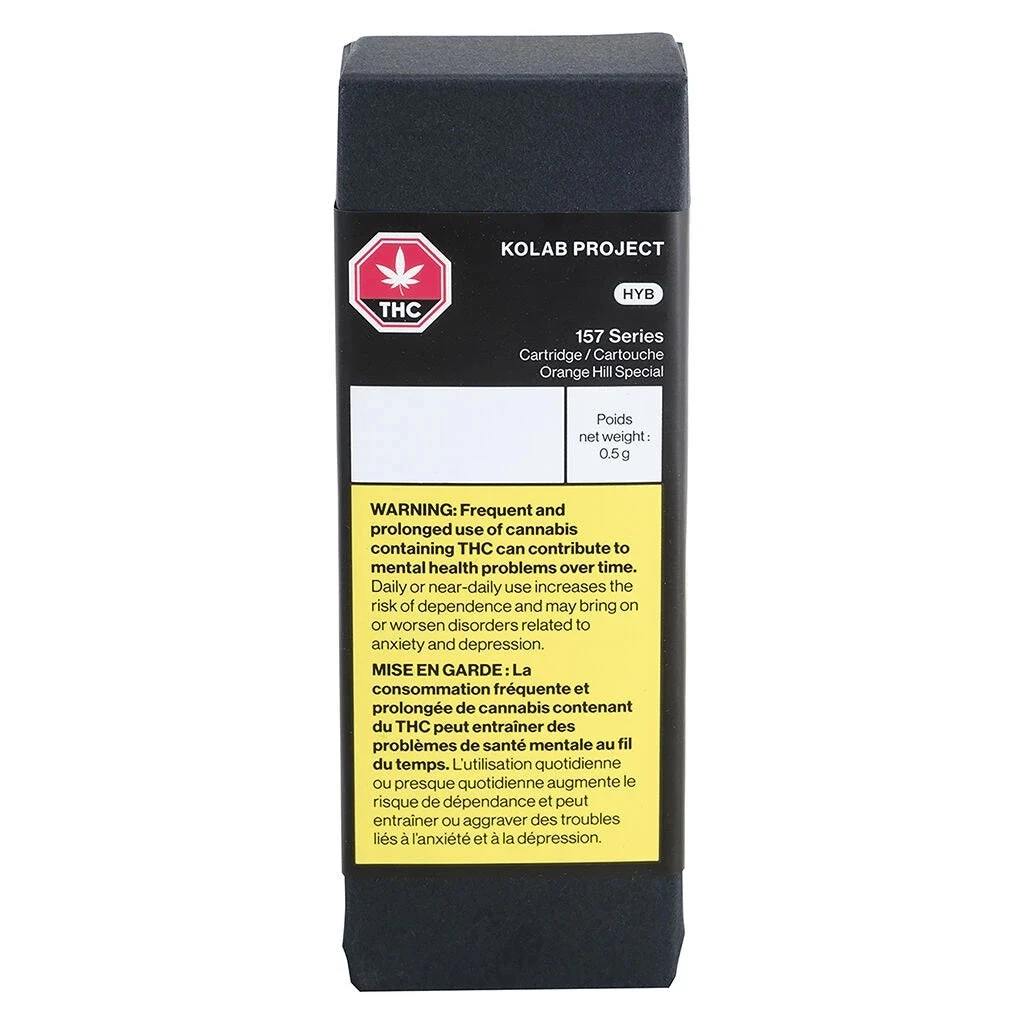 The flavour profile is influenced by the Orange Hill strain and Limonene is the dominant terpene. Kolab Project cannabis extracts are tested rigorously to ensure a high-quality experience. Our vapes only contain two ingredients: cannabis distillate and botanical terpenes.