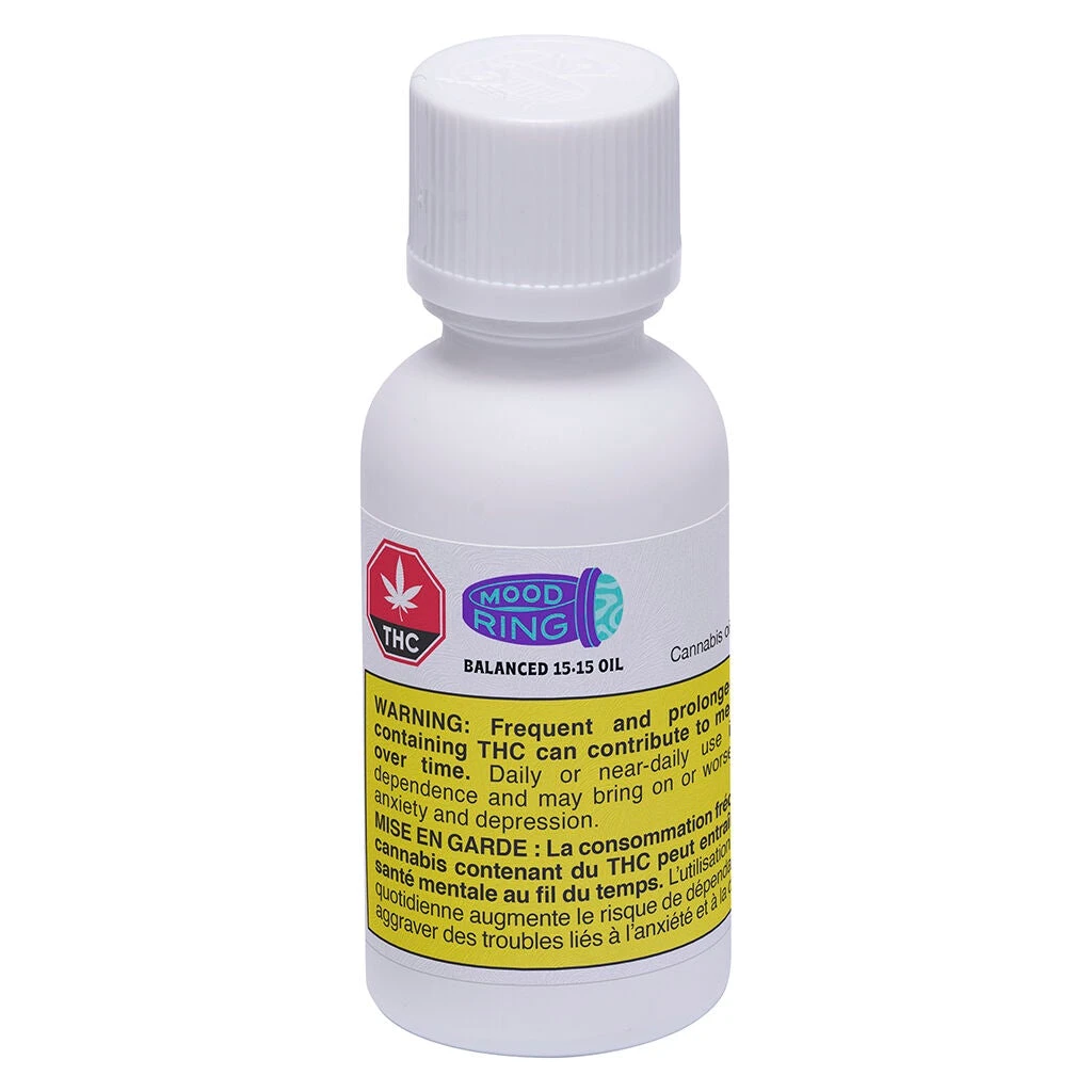 Mood Ring Balanced 15:15 Oil combines organic extra virgin olive oil and 450 mg of both THC and CBD, for a total of 900 mg of cannabinoids, per 30 ml bottle. We utilize our patented cold ethanol extraction process to create a full spectrum concentrate that preserves the terpene profile and provides a natural, earthy aroma and flavour. Our Mood Ring Balanced 15:15 Oil does not contain animal products, is non-GMO and is packaged in an eco-friendly glass bottle.