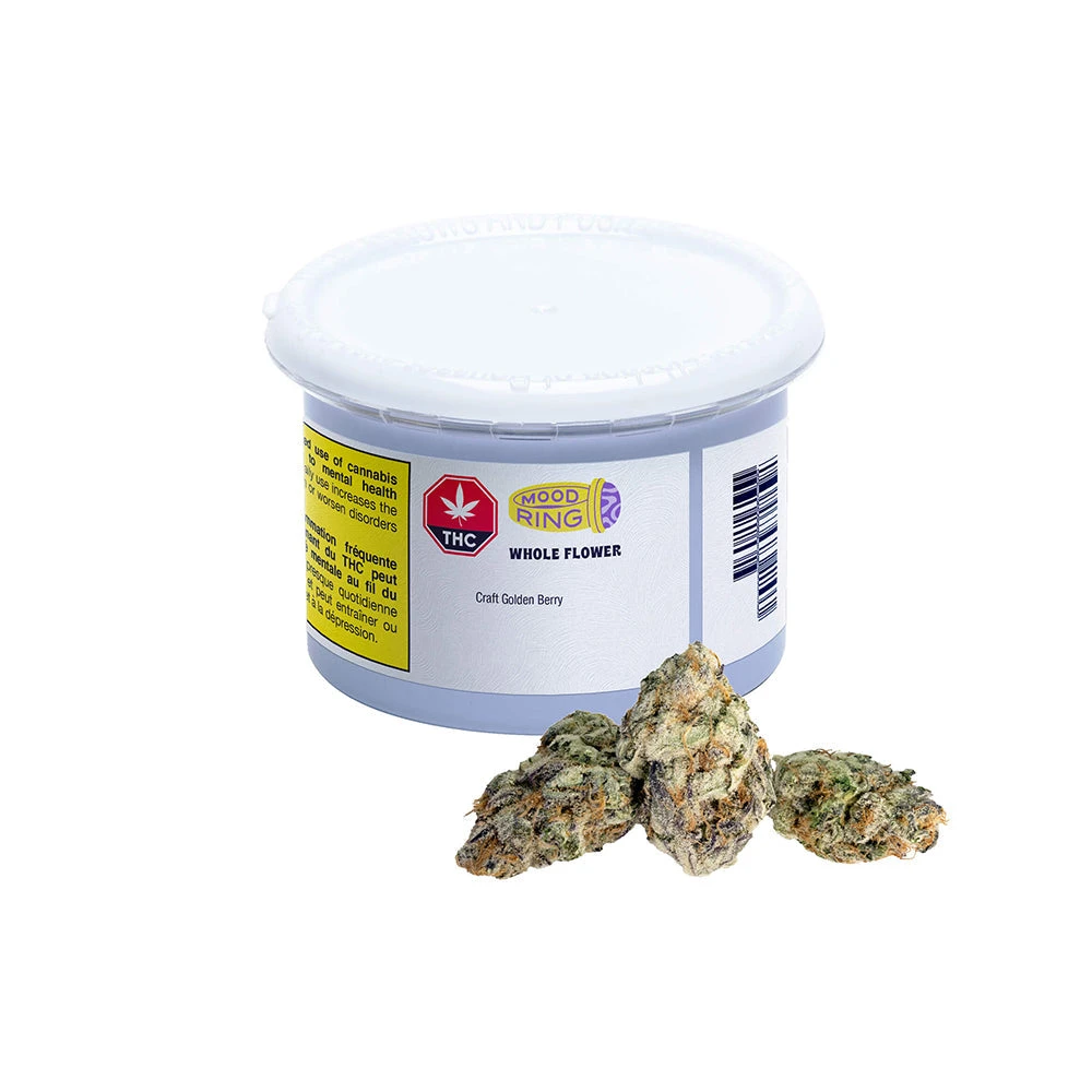 Craft Golden Berry is an indica-dominant hybrid with a sweet-spicy berry taste that is delicate and natural without being overpowering. The flavour profile includes undertones of red berries, slight skunk and pine aftertaste. Hang dried, hand selected, hand portioned and hand packaged and finally sealed in nitrogen to preserve quality, humidity, freshness and terpenes ensure Mood Ring Craft Golden Berry arrives in the customer’s hands just as it was when it was selected by our award-winning cannabis sommelier.