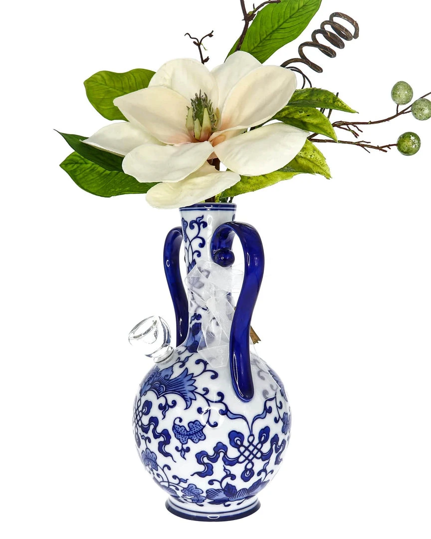 The Double Happiness has a classical yet timeless design, and features two beautifully crafted handles along side the the pipes mouthpiece. This lovely waterpipe also features a specially crafted clear bubble bowl with rubber o-ring that assists in creating an airtight seal when you’re hitting the piece, and a vibrant Magnolia arrangement that also acts as a poker tool whenever necessary.Β Β