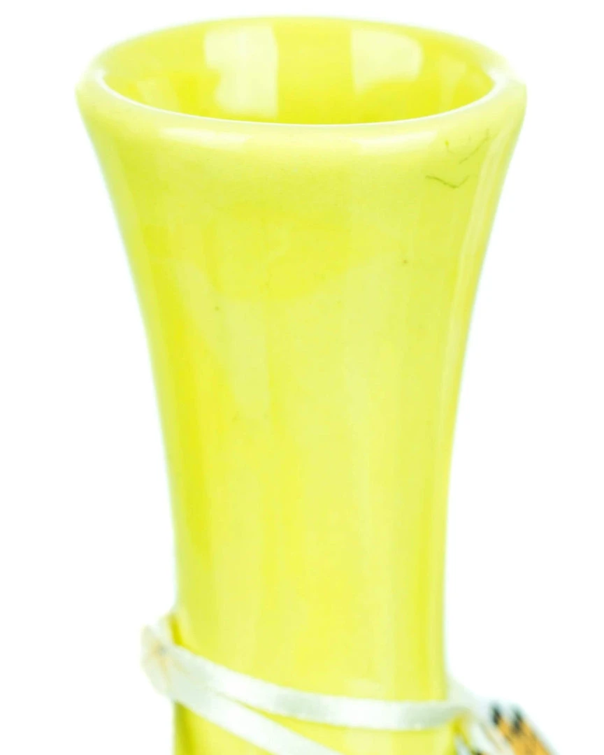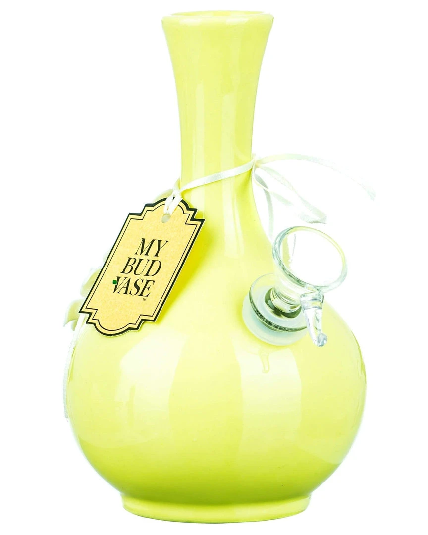 With its quirky and beautiful yellow porcelain body, “Phoebe” will provide you with plenty of relief. The worked relief flower accents also help sooth you just by looking at them. These flowers are porcelain as well. Very similar in shape are the faux flowers that are included when “Phoebe” shows up to the door. Some of these flowers have rhinestone rosettes for some extra pizzazz. These flowers serve a much needed purpose as well. Use the pointed end to scrape any ash or gunk from the included bowl and downstem. No one wants to be a smelly cat with a dirty bong. The bowl that comes with the “Phoebe” Water Pipe has a handle for easy removal. It slides directly into the rubber grommet joint. The rubber grommet joint sits in the water waiting to diffuse your smoke. This process helps keep your smoke smooth, just like “Phoebe”. Whenever you are done enjoying “Phoebe” take the bowl out and insert the faux flower poker into the flared mouthpiece. The porcelain flowers are located on the opposite side of the rubber grommet joint, allowing for complete cover when wanting to hide the fact that this vase is a bong. Turn the rubber grommet joint around so the relief flowers are showing and now you just have an everyday, great looking vase. The “Phoebe” Water Pipe from My Bud Vase brightens your day and any room you decide to put her in. Pick up her mates “Monica” and “Rachel” for the whole friend group. After all you can get high with a little help from your friends.