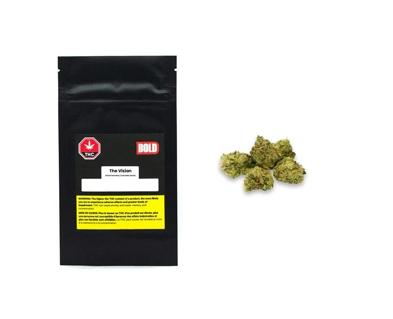BOLD proudly presents The Vision. Classically crossed between Lemon G and Do-Si-Dos, this cerebral hybrid is hung dried, slow cured and dry trimmed by hand to enhance its dense body and sweet undertones. The Vision has large, dense green flowers with lots of frosty trichomes.