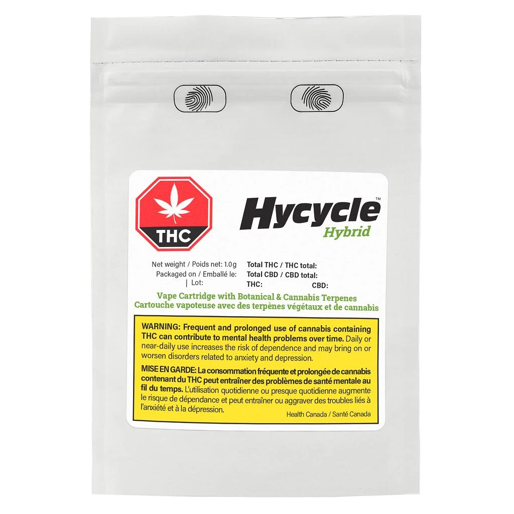 The rugged 1g Hycycle Hybrid cartridge is the best of both worlds. The addition of real cannabis terpenes delivers a familiar, yet complex flavour and aroma compared to other vapes, without the harsh burn associated with inhaling burning cannabis flower. Notes of exotic fruit are played by a herbal symphony during an all-you-can-eat buffet of ‘have you ever noticed’, ‘I really like your hair’ and ‘let’s go for a hike’, followed by ‘sunset in the back yard’ for dessert. Hycycle Hybrid is a confidant, a work-out partner, a philosopher and a good listener. Limonene is the dominant terpene, supported by alpha-pinene, myrcene, terpinolene, linalool and a team of other terpenes that gather and hold them all together, creating harmony in taste and effect. Hycycle cartridges are quality CCELL and boast shatter-proof tanks, impact-resistant mouthpieces and ceramic cores. Compatible with 510 thread devices. Device not included.