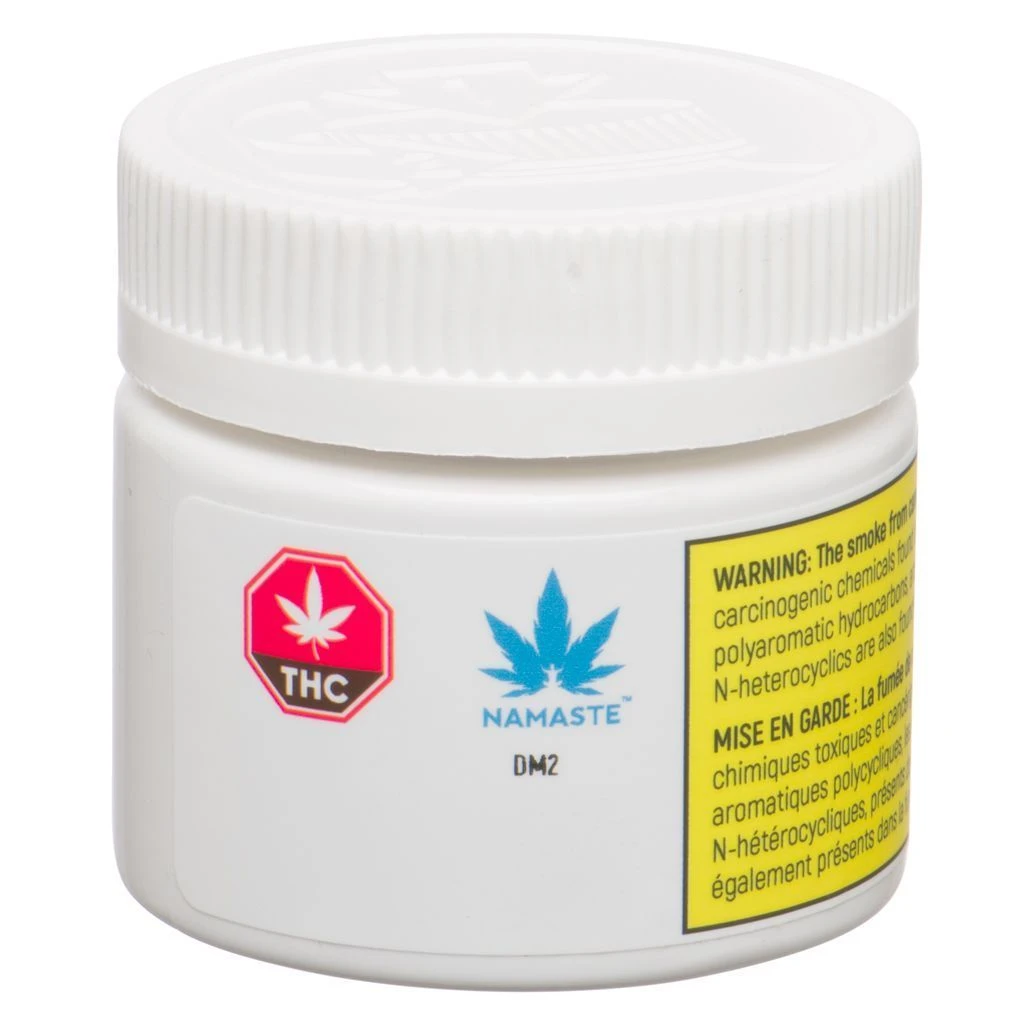 Durga Mata 2 by Namaste is a high-CBD indica strain with very mild THC potency potential. This particular strain is grown in coco husk/peat moss in a 100% indoor facility in New Brunswick. Each flower is machine-trimmed, hand-groomed, and dried using a rack-and-tray method. This plant’s buds are dark green and dense. It produces aromas of sweet citrus from its terpene mix which includes terpinolene, limonene and myrcene. Durga Mata 2 is available in 1g and 3.5g dried flower weights as well as pre-rolls.