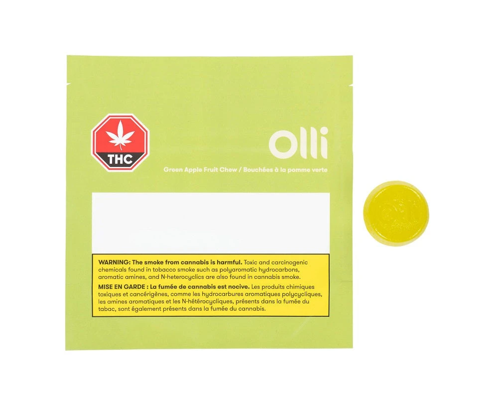 Olli Green Apple Fruit Chews are the perfect blend between culinary and cannabis. Each package contains two plant-based, gluten-free chews made for sharing or unwinding. Each chew contains 5mg THC and 10mg of CBD, uses thoughtful ingredients and provides a bright and crisp green apple flavour.