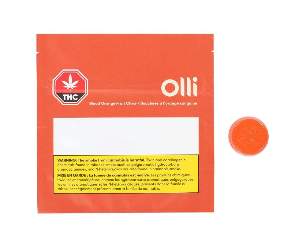 Olli Blood Orange Fruit Chews are the perfect blend between culinary and cannabis. Each package contains two plant-based, gluten-free chews made for sharing or unwinding. Each chew contains 5mg THC and 5mg of CBD, uses thoughtful ingredients and provides a bright and refreshing blood orange flavour.