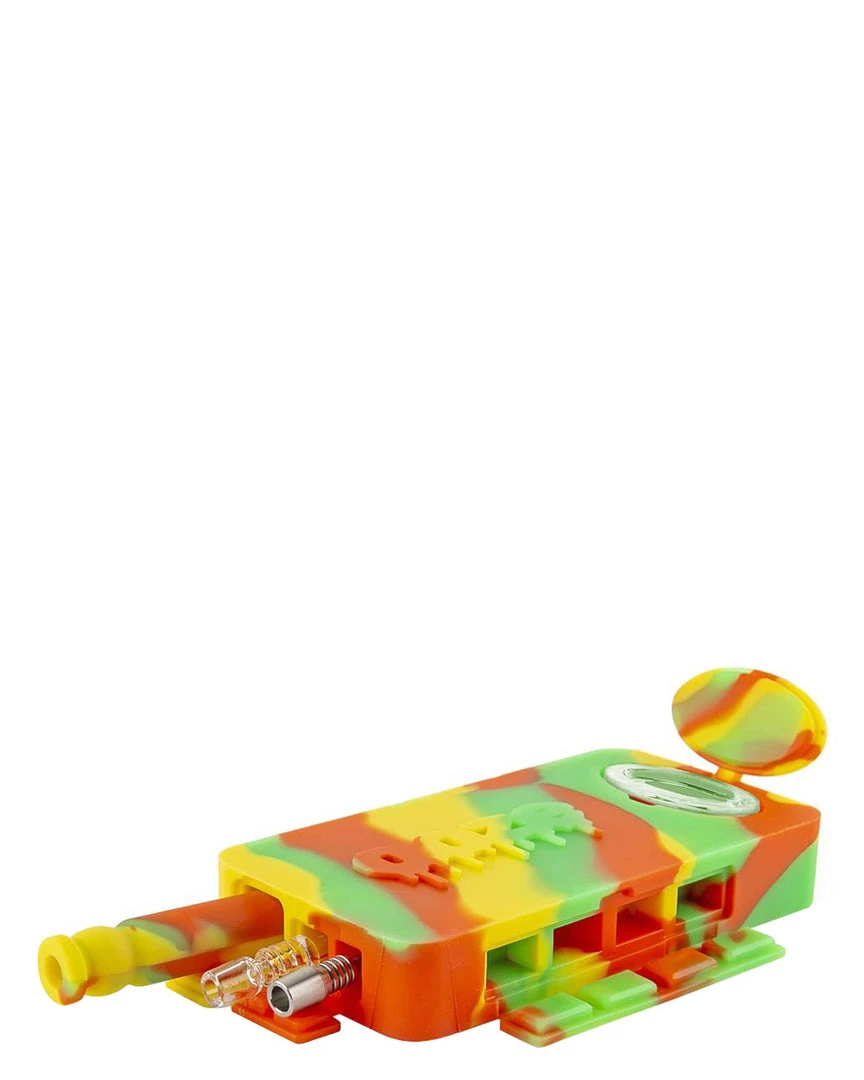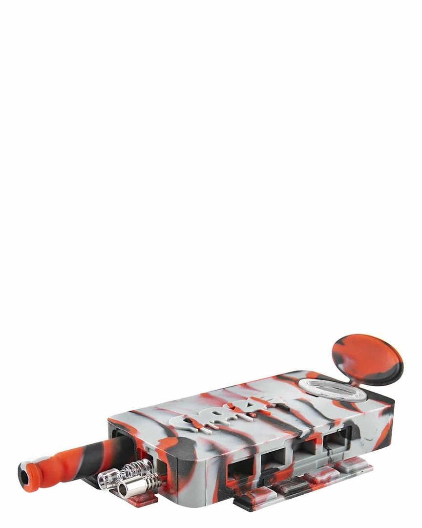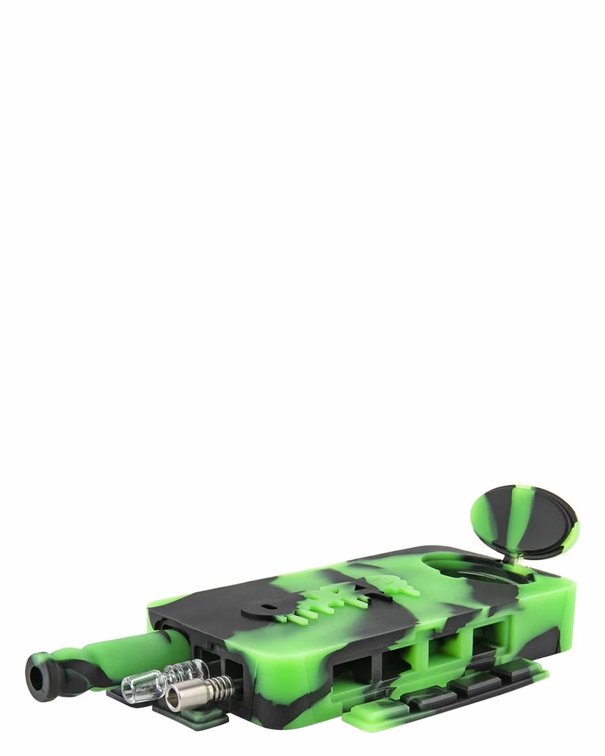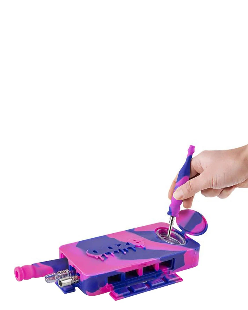 Now here we have a truly innovative design from the team at Ooze. The Slugger Dabbin Dugout is the perfect travel companion for you and a variety of your favorite concentrates. The Slugger is a full silicone dugout with multiple silicone chambers for storing your concentrates, a fitted glass dish, and all the tools you’ll need to enjoy a sip of concentrate smoke anywhere you like. The side chamber of the Dabbin Dugout features four divided storage compartments letting you travel with a variety of wax materials at once. Not only do you have a selection of your wax materials to choose from, but also how you consume them with quartz glass or titanium straw tips available at all times! When your session is over, pack the Slugger party up and close all the protective silicone lids, just like that we’re ready to move! When the Dabbin Dugout gets dirty you can expect the platinum cured silicone to be easy to clean, even dishwasher safe.