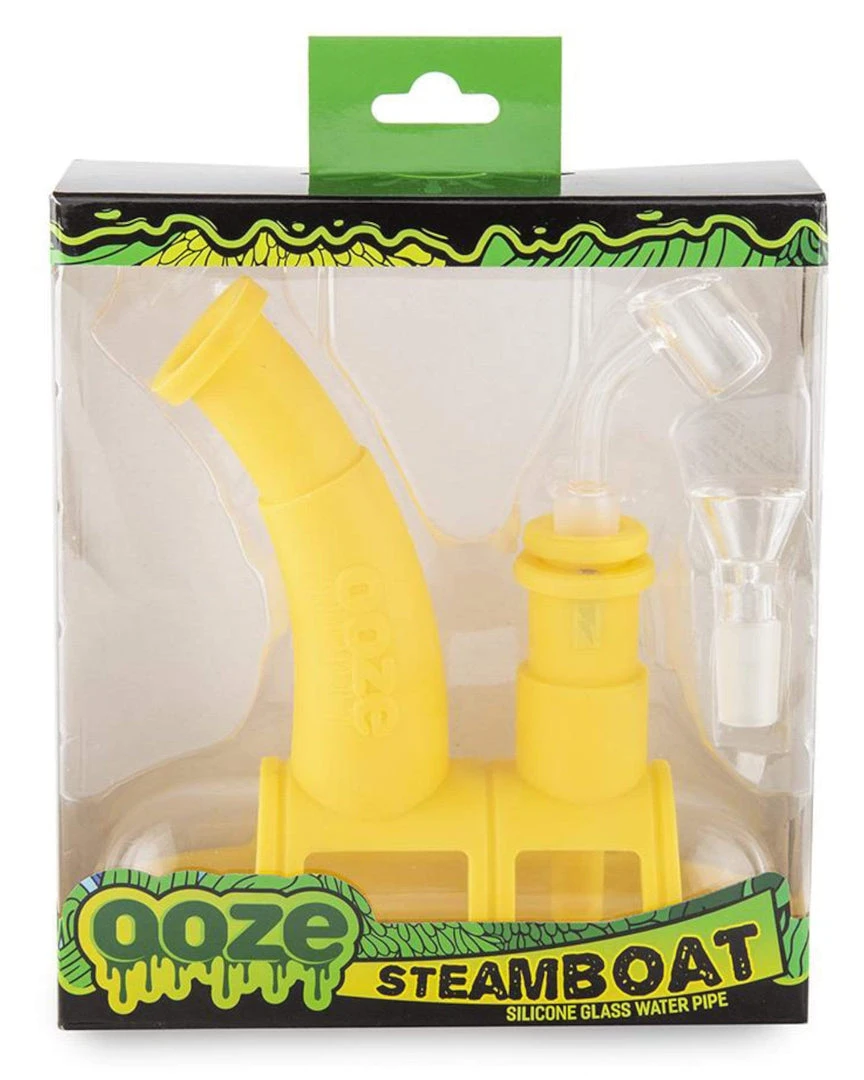 Yellow not your mellow? The Steamboat silicone bubbler from Ooze comes in a wide variety of awesome colors all of which function wonderfully. This bubbler rig has multiple inner glass chambers protected by the submarine shaped silicone sleeve. The 18mm joint features a small magnetic lightningbolt on the side to hold your dab tools or keep a lighter close by. The 14mm downstem goes into this joint and then it’s up to you to decide whether you need the 14mm banger for concentrates, or 14mm male bowl for dry herbs.