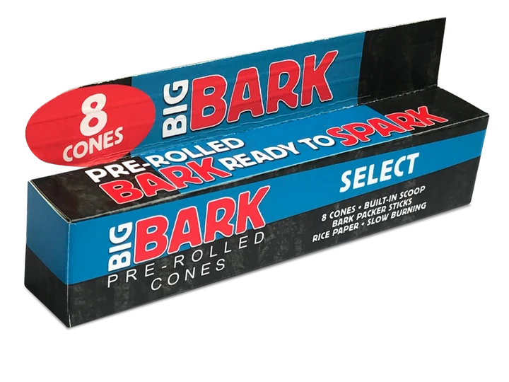 Pre-Rolled Bark, Ready to Spark. BigBark Pre-Rolled Cones feature added value with 8 Cones, 4 Packer Sticks and a tear-away scoop built right in to the packaging to help elevate your rolling experience. Never let a single tiny bit of herb go to waste.